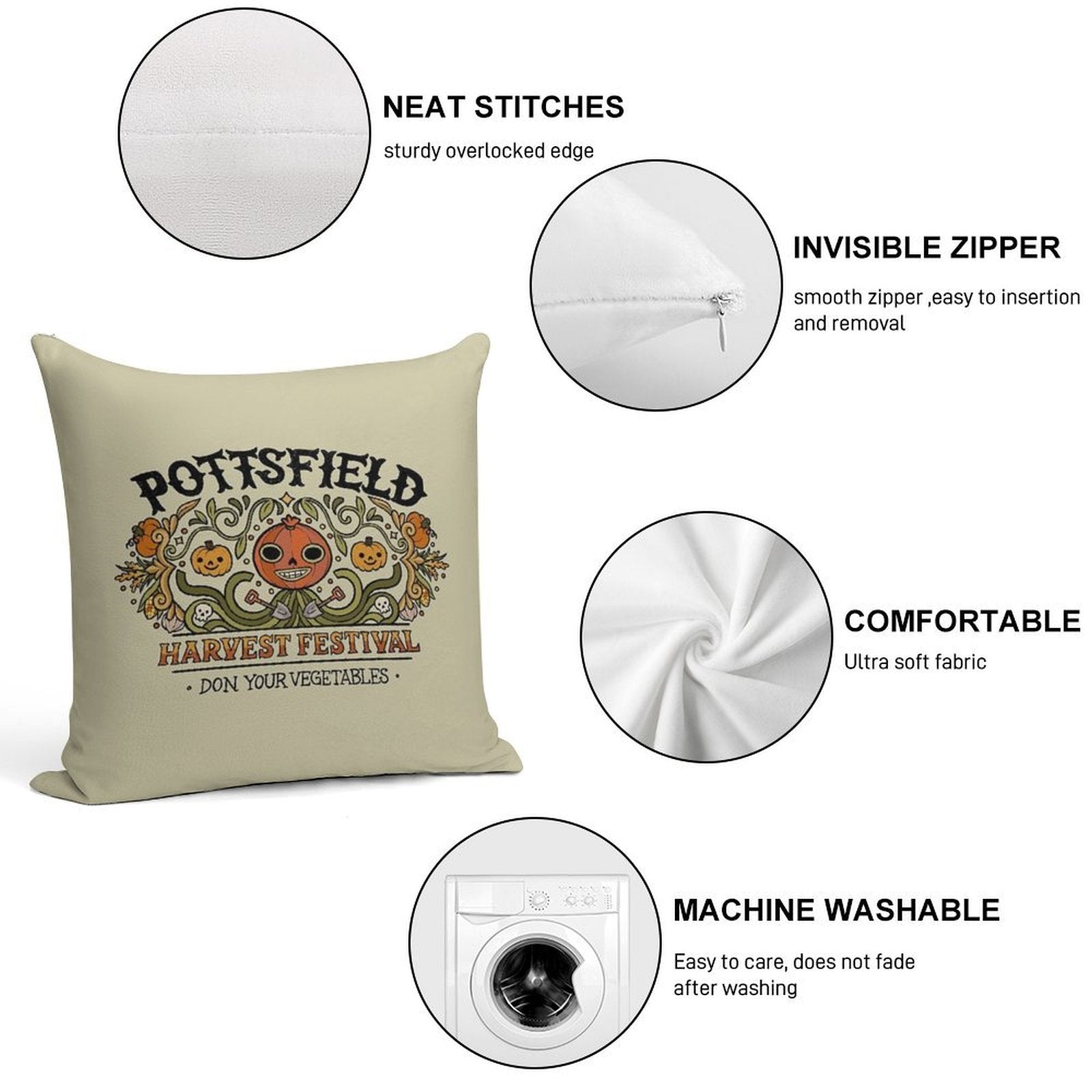 - Reinforced stitching along the edges prevents fraying and extends the life of your Pottsfield Harvest Festival Pillowcase.