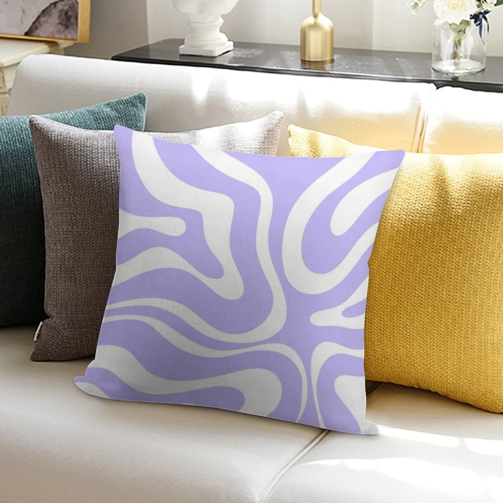 ✔️ Fits Any Style – Neutral tones and plush texture suit all Retro Modern Liquid Swirl Abstract Pattern Square in Light Purple And White decors.