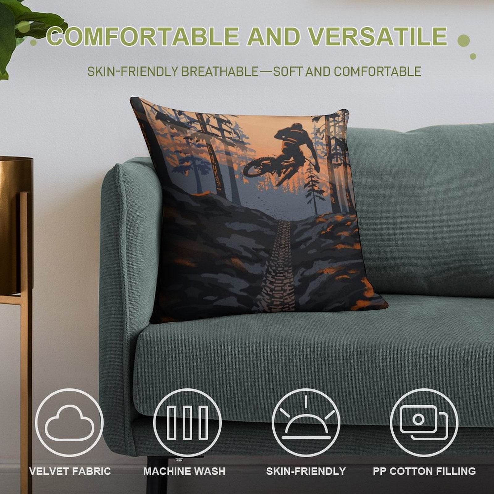 Retro Styled Mountain Biking Dirt Jumper Sunset Soft Warmth Comfort Throw Pillow