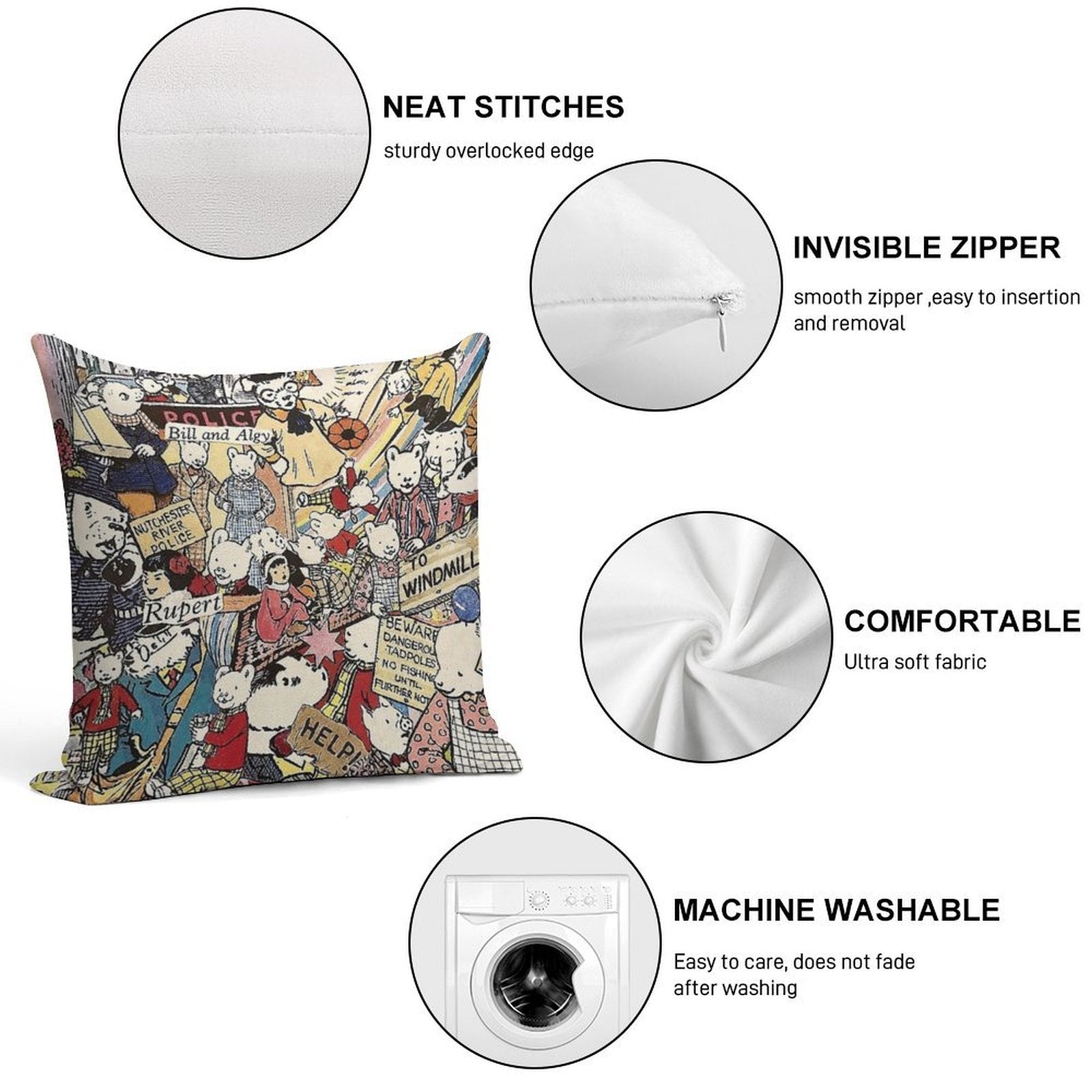 • Reinforced stitching along the edges prevents fraying and extends the life of your Rupert Bear Pillowcase.