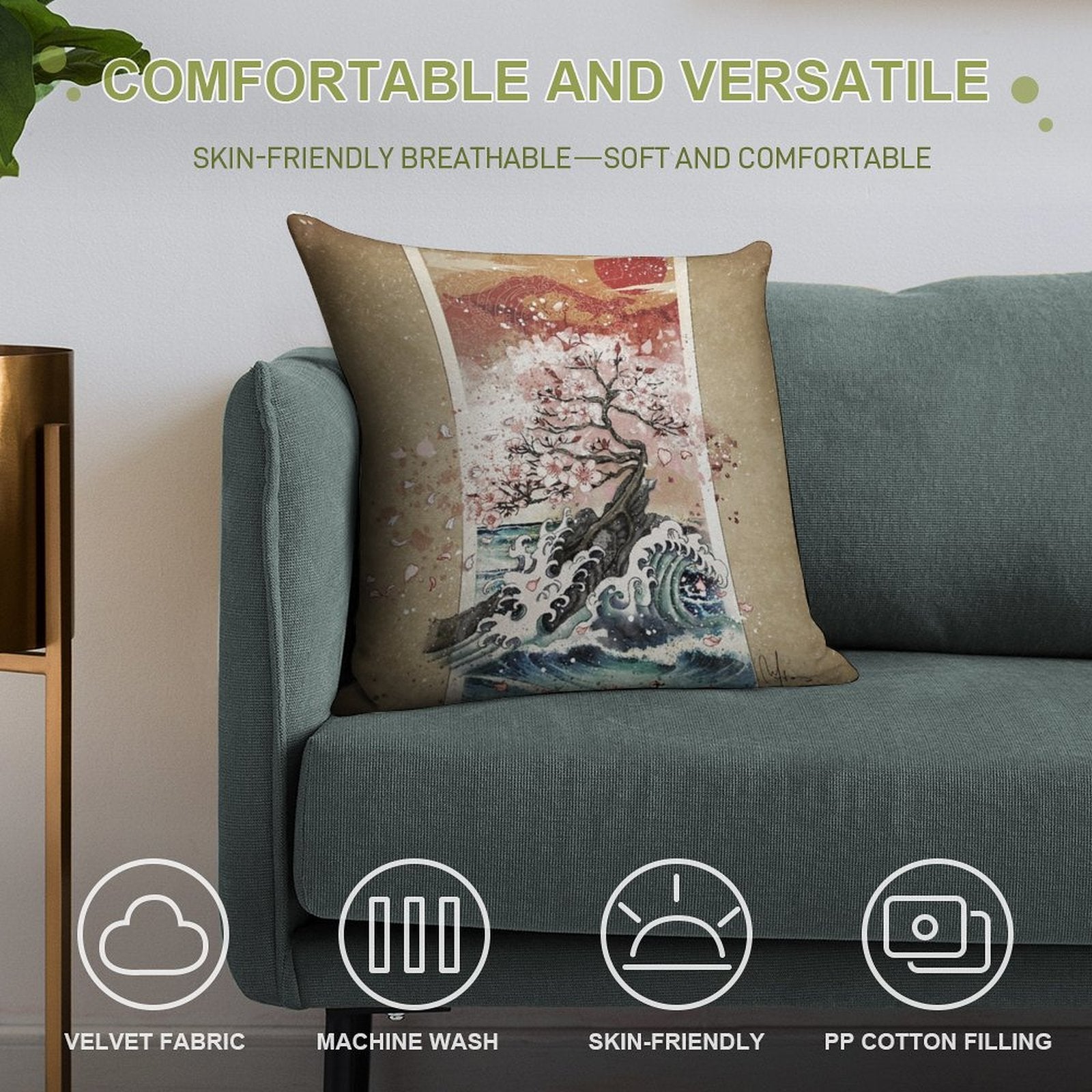Sakura Blossom Waves Soft High-Density Material Throw Pillow