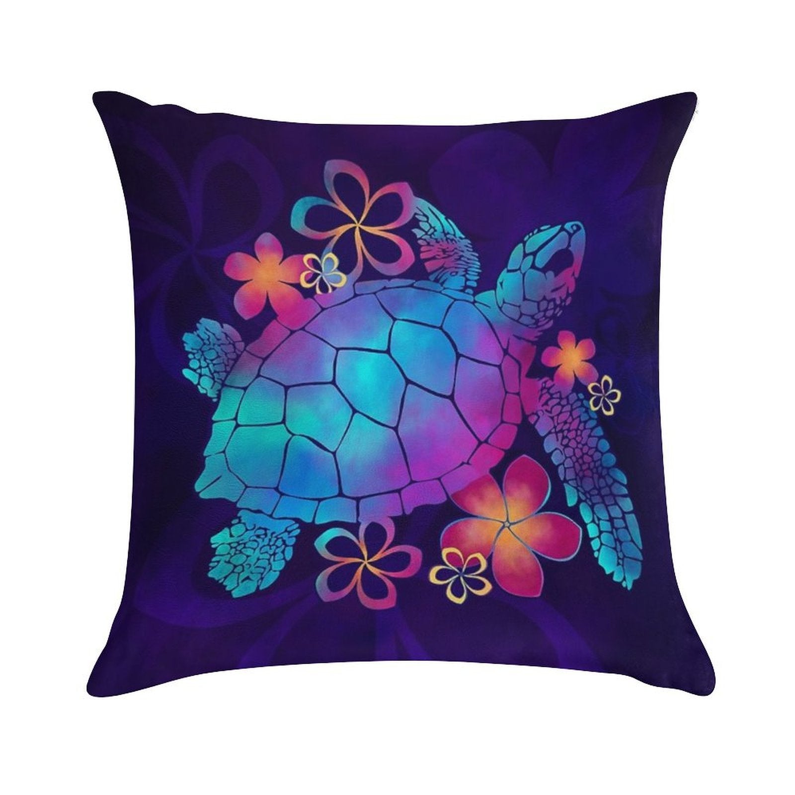 Sea Turtle with Flowers Blue And Purple Soft Fade-Resistant Throw Pillow