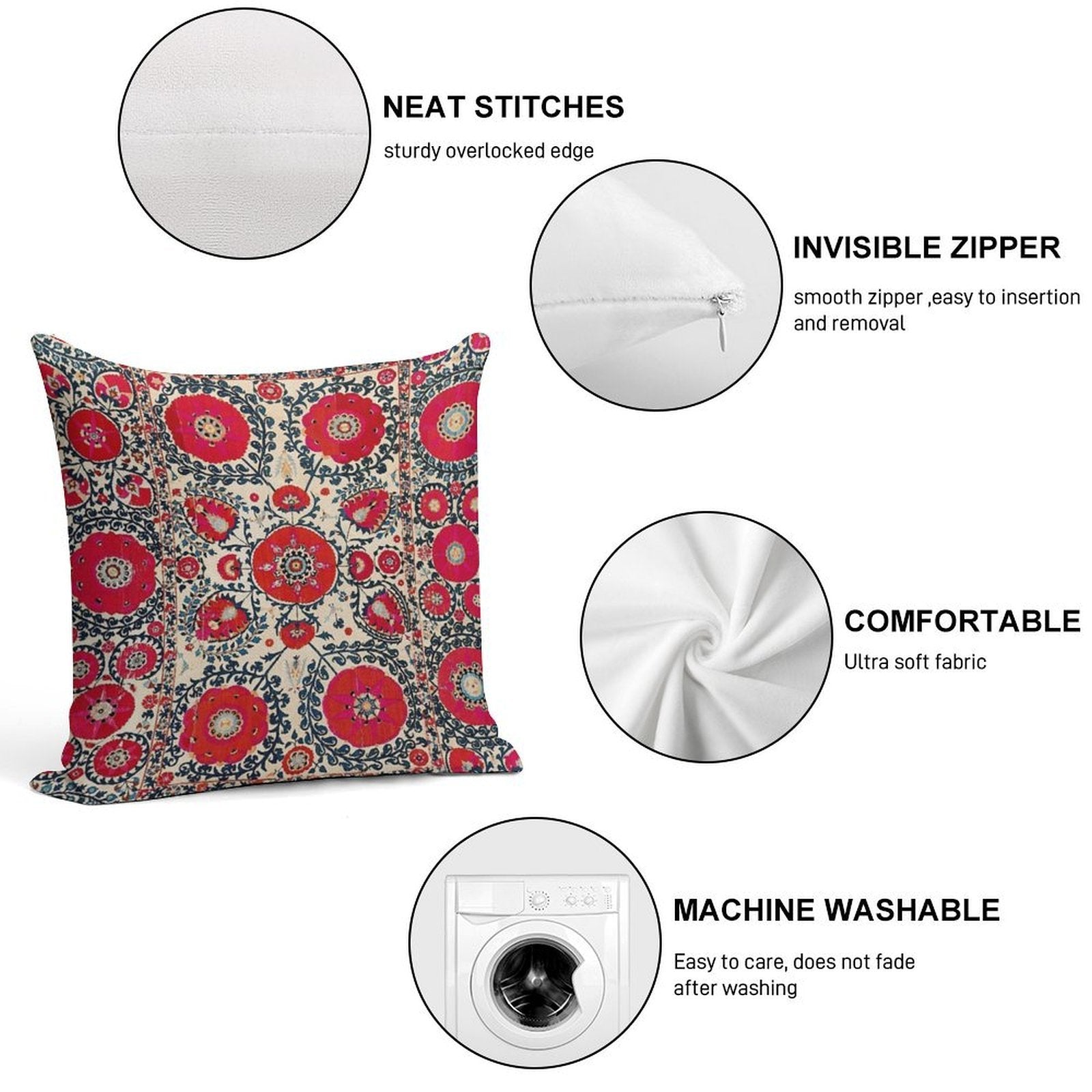 • Reinforced stitching along the edges prevents fraying and extends the life of your Shakhrisyabz Bokhara Uzbekistan Silk Embroidery Print Pillowcase.