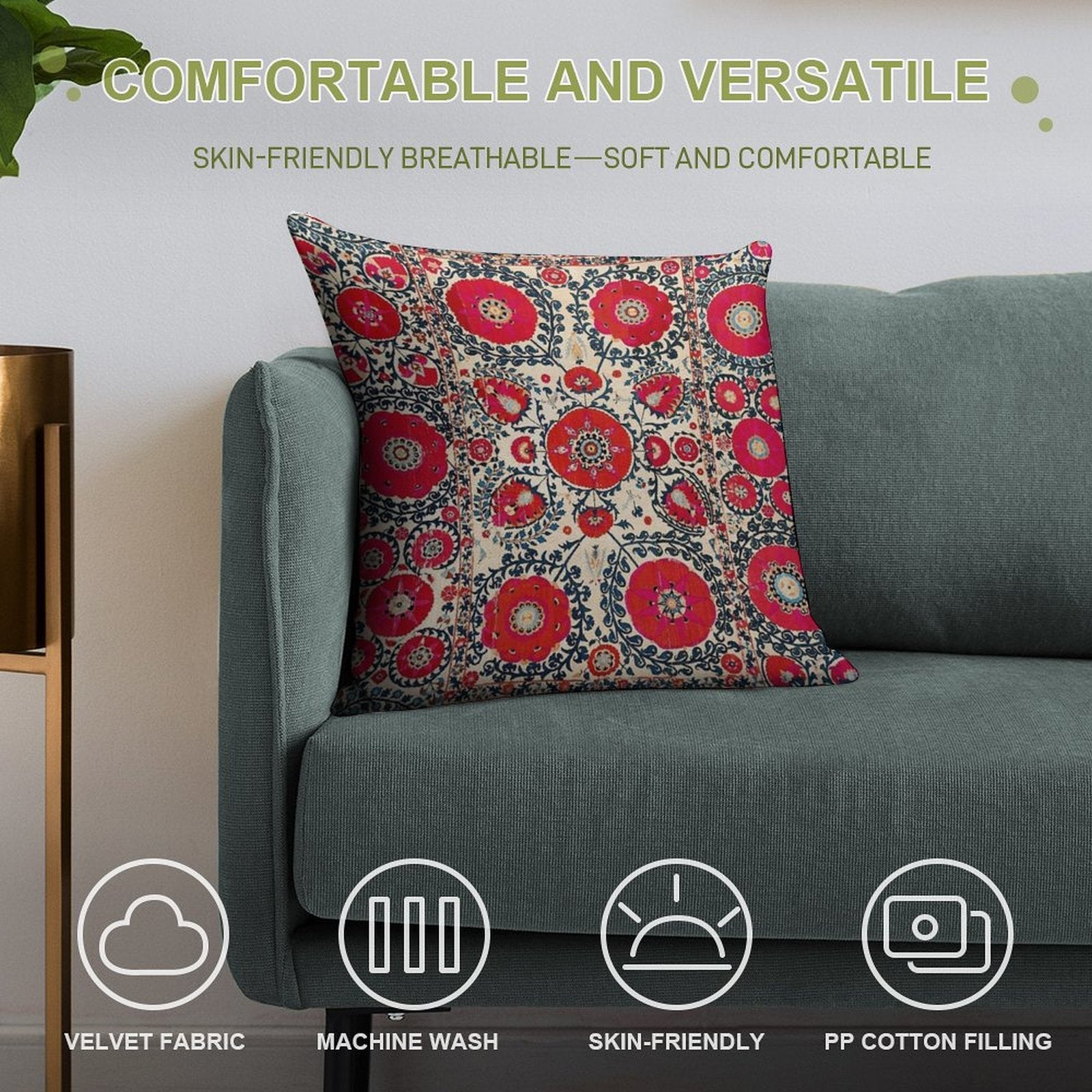 Shakhrisyabz Bokhara Uzbekistan Silk Embroidery Print Soft Home Decor Throw Pillow