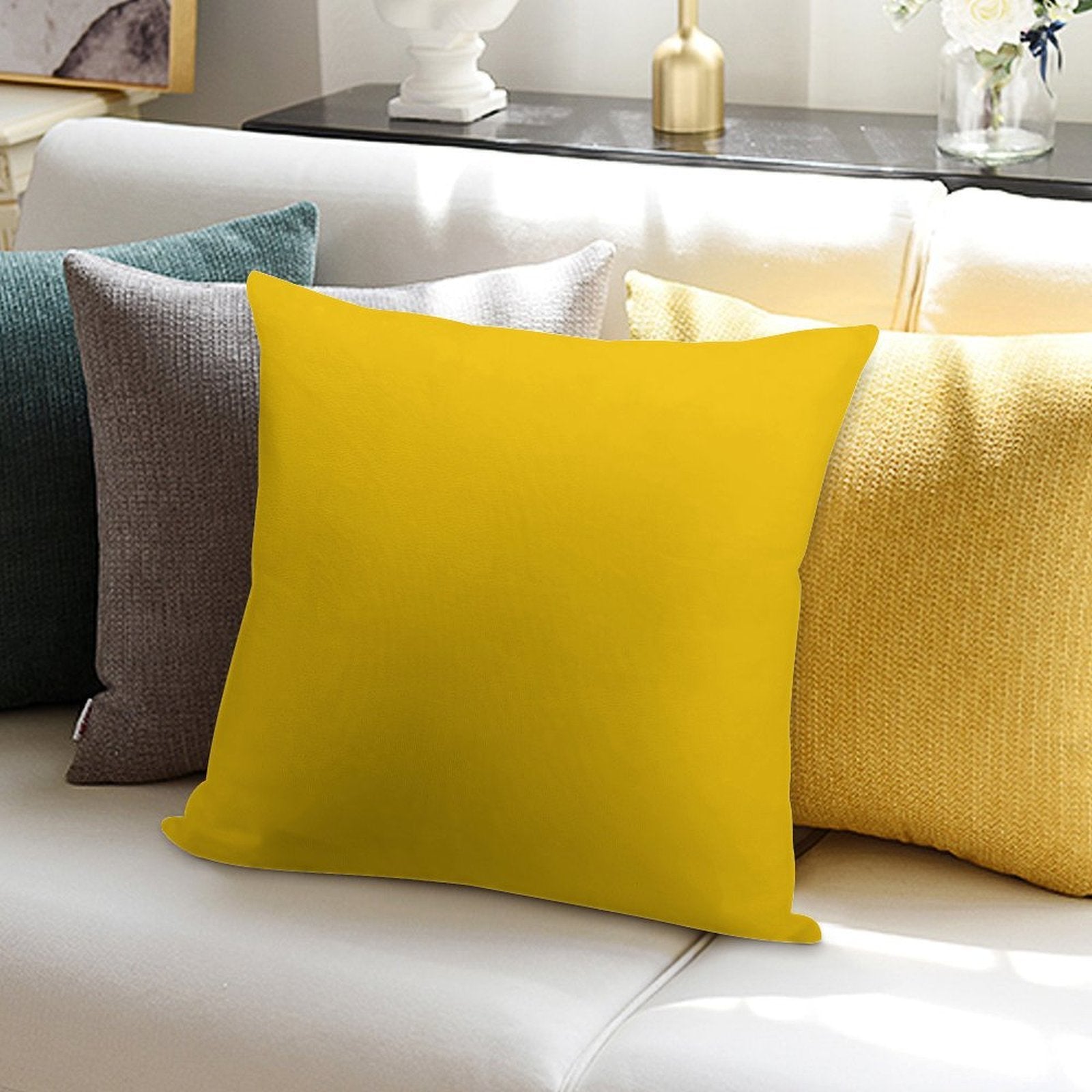 Solid Plain Mid Yellow Soft Easy Maintenance Throw Pillow