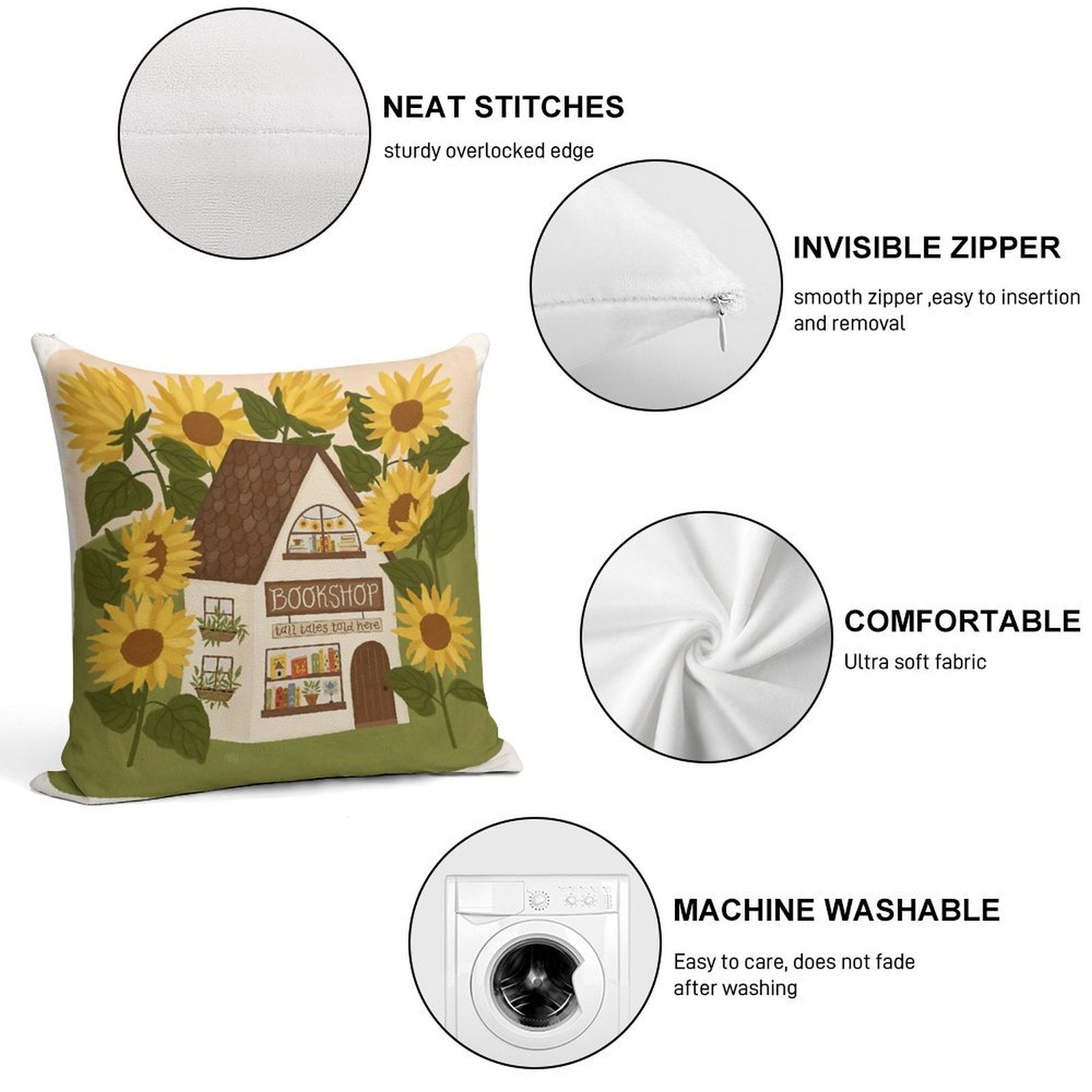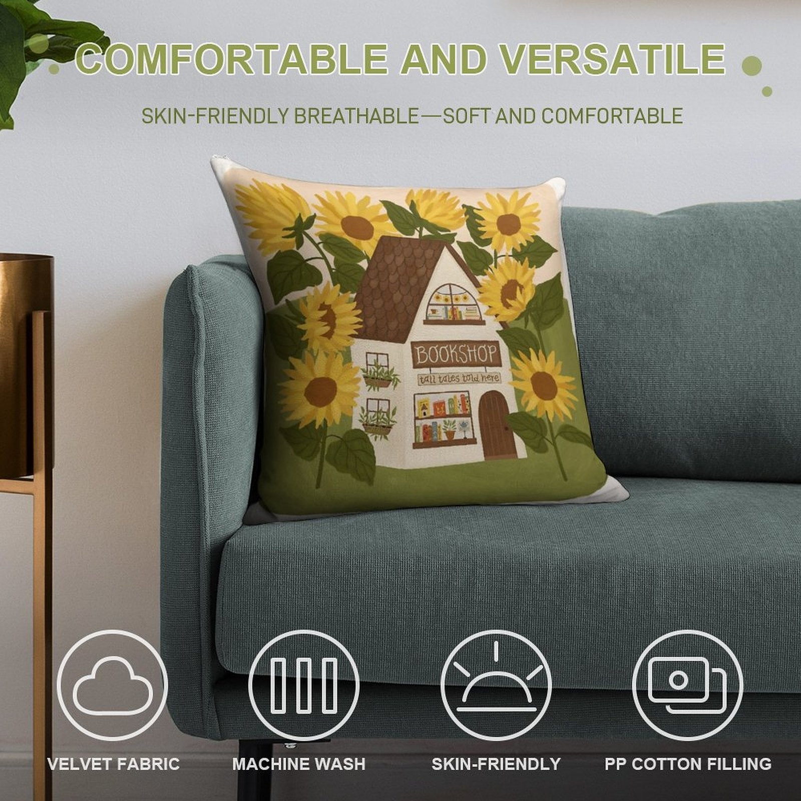 Sunflower Bookshop Soft Multiple Sizes Throw Pillow