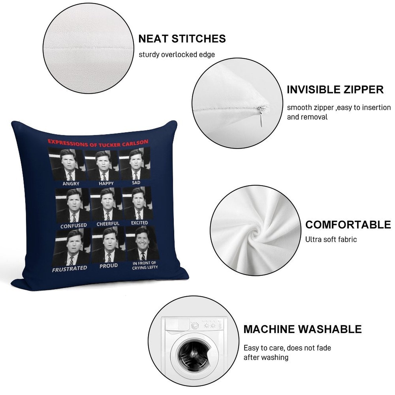 The Expressions of Tucker Carlson Soft Fade-Resistant Throw Pillow