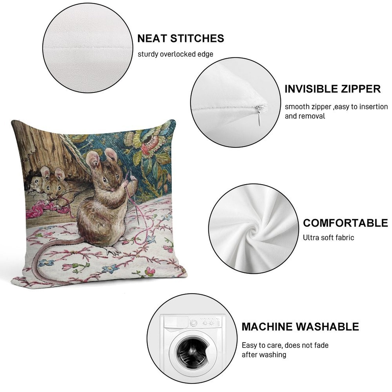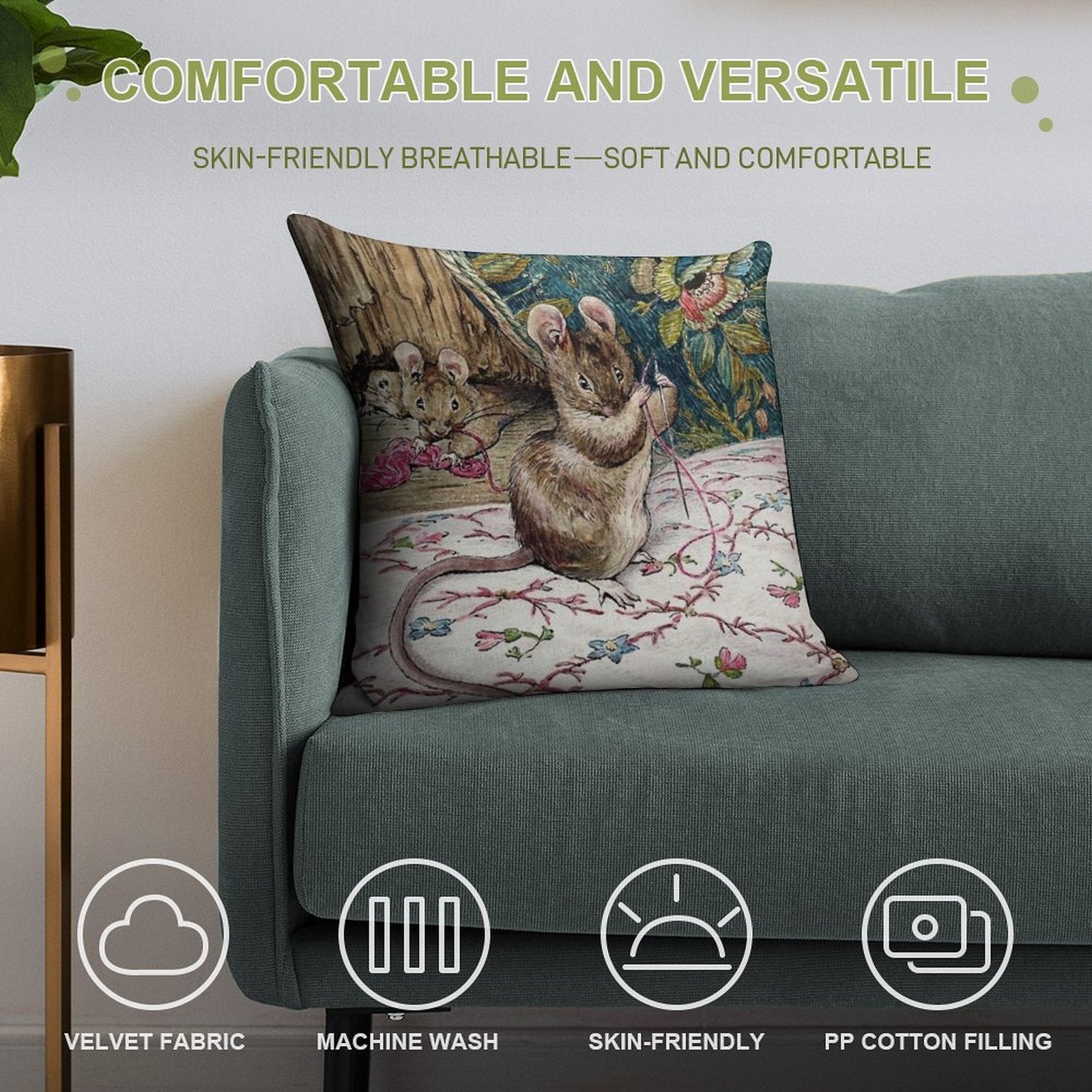 The Mice Go to Work - The Tailor of Gloucester - Beatrix Potter Soft Gift Ready Throw Pillow