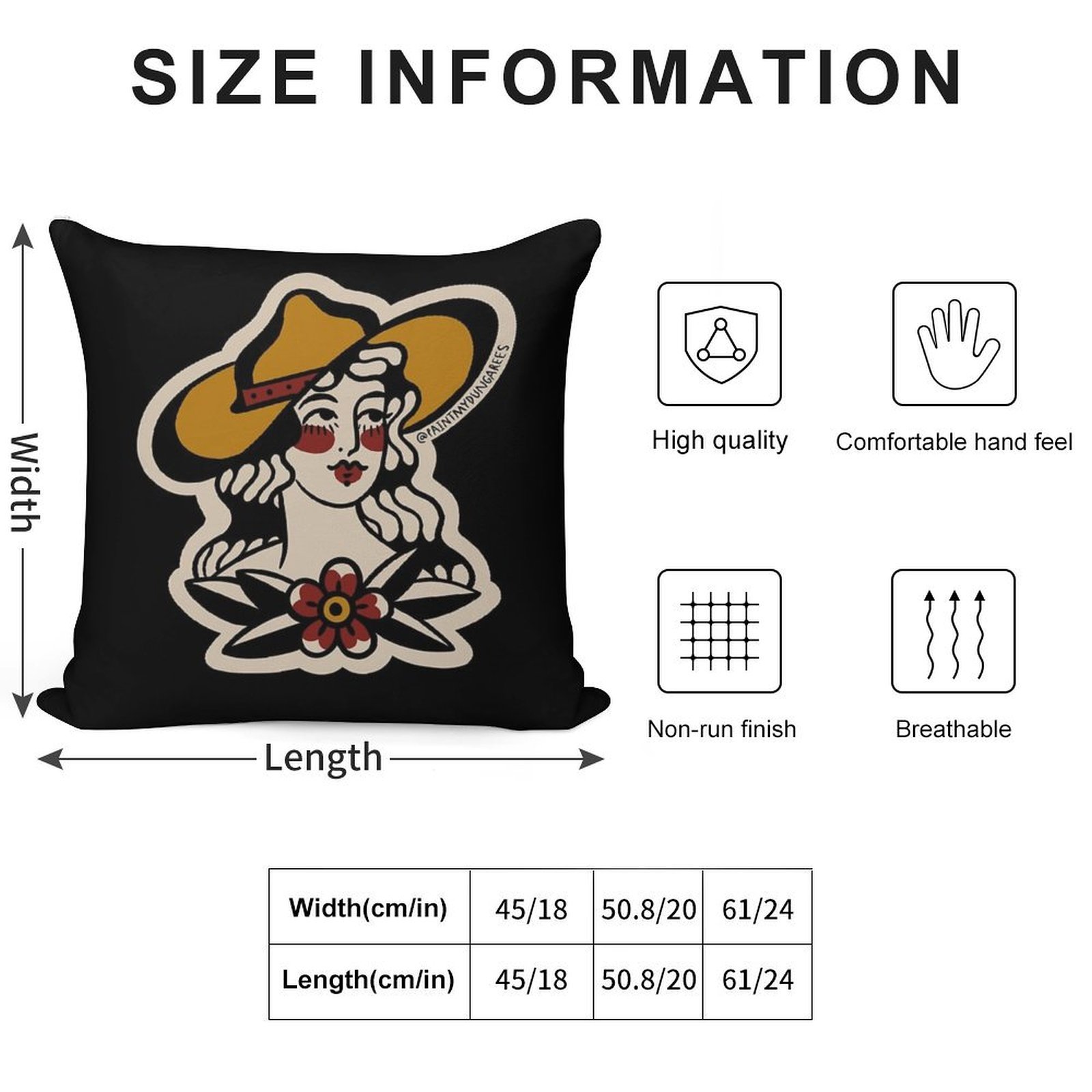 - Reinforced stitching along the edges prevents fraying and extends the life of your Traditional Cowgirl Tattoo Flash Pillowcase.