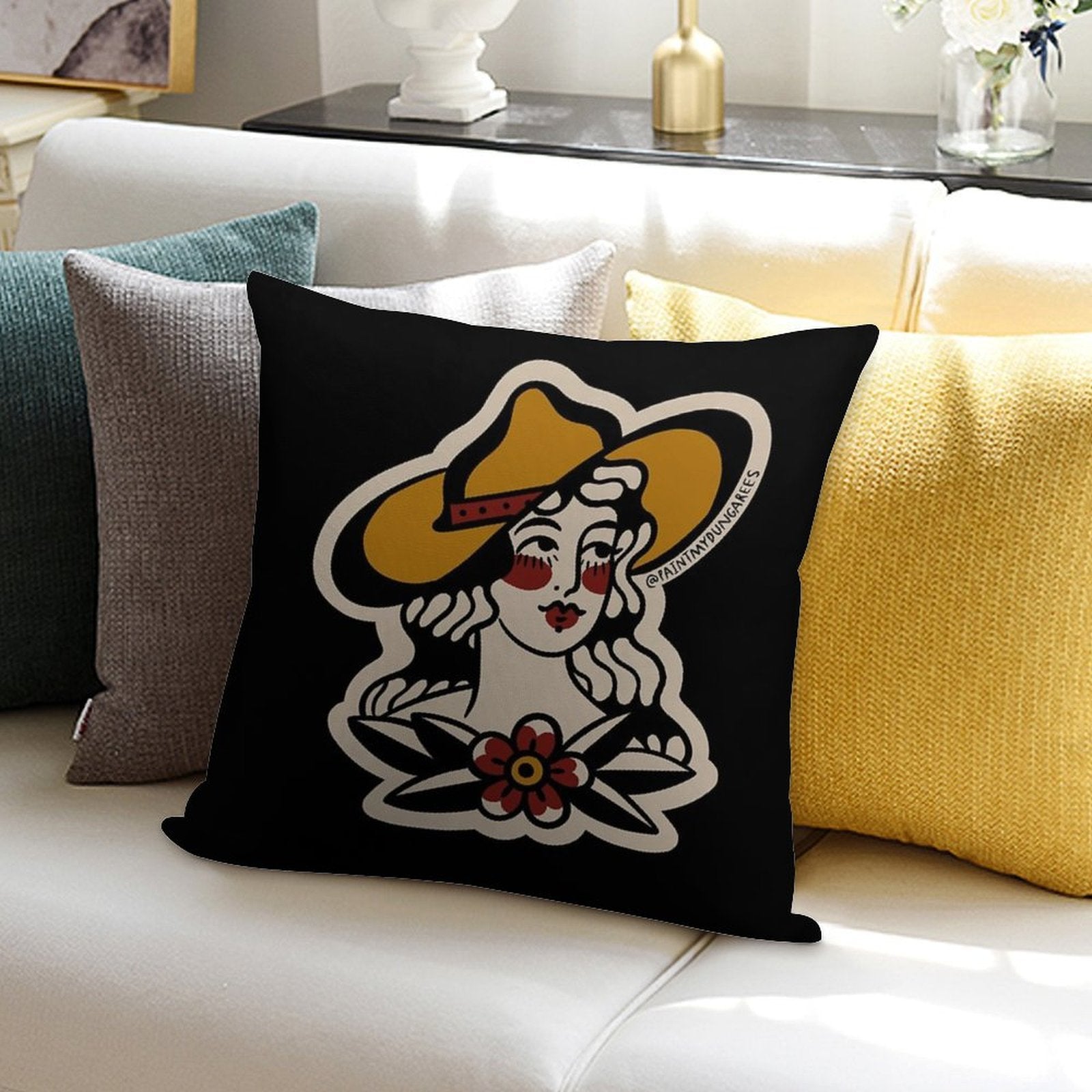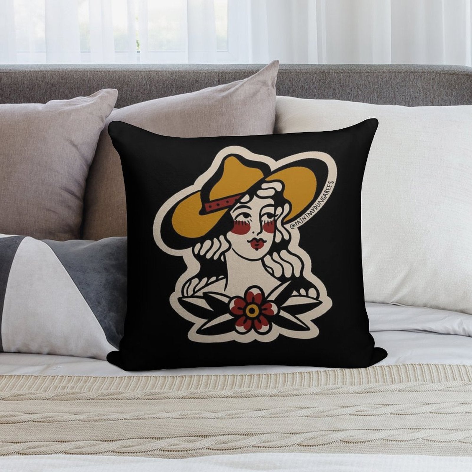 Traditional Cowgirl Tattoo Flash Soft Reinforced Edging Throw Pillow