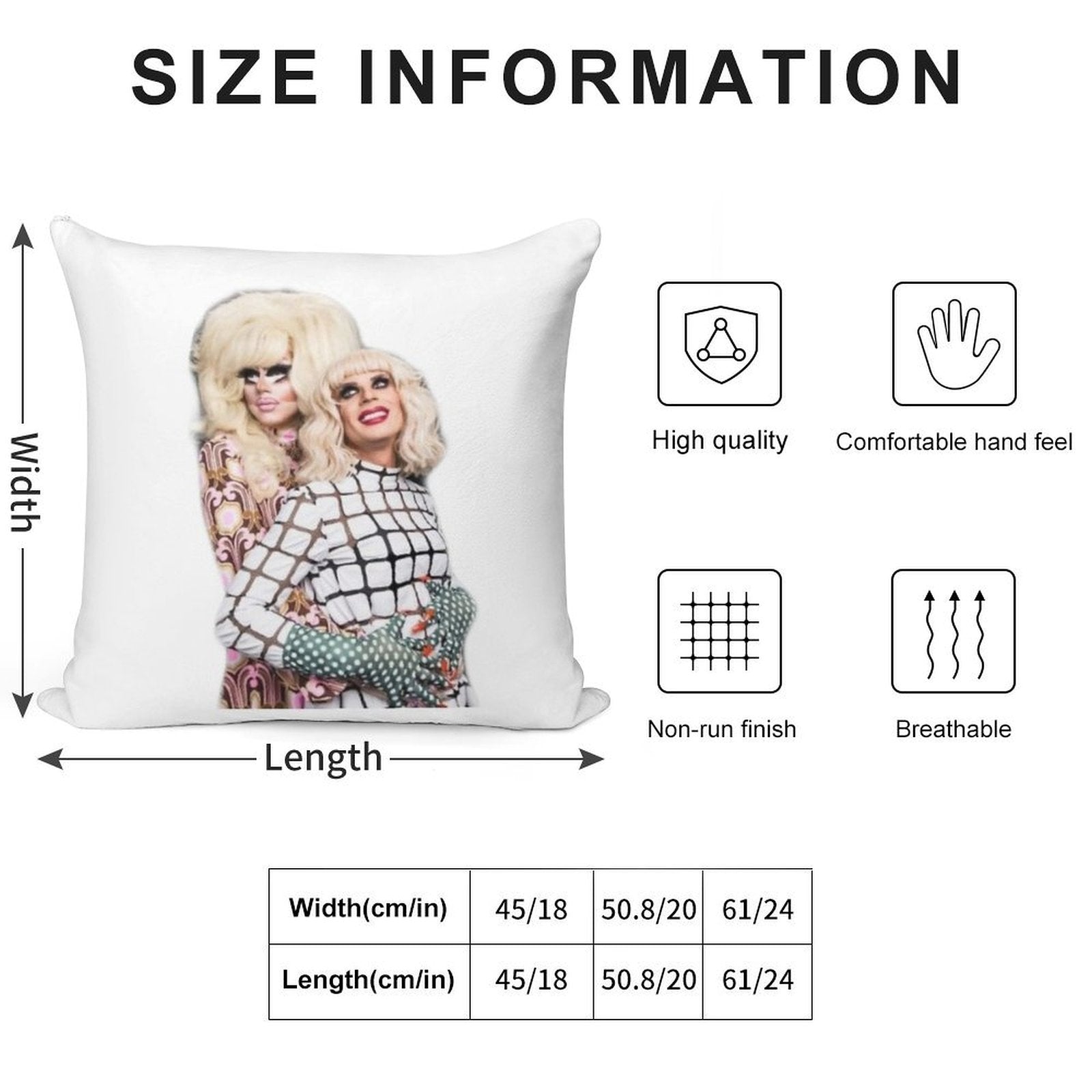 • Reinforced stitching along the edges prevents fraying and extends the life of your Trixie And Katya Couple Pose Pillowcase.