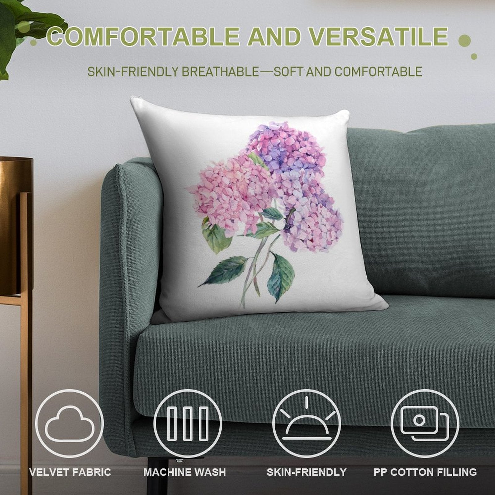 Watercolor Branch of Blooming Hydrangeas Soft Style Accent Throw Pillow