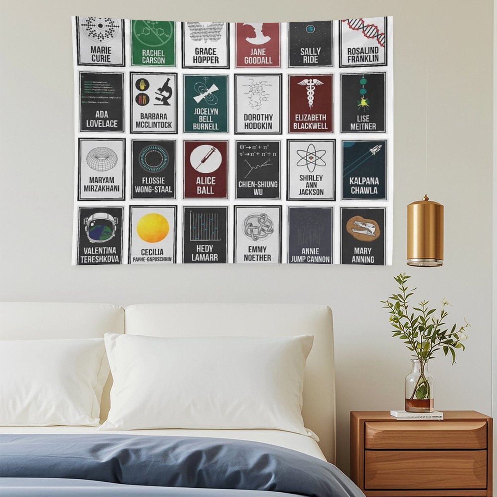 BionZax's 24 Women Who Changed Science. And The World. Tapestry for Bedroom, College Dorm. 24 Women Who Changed Science. And The World. Tapestry to decorate your bedroom, college dorm, living room, or kitchen wall, it is the best gift for funny, meme, aesthetic, trendy, simple, fashion, music, abstract, fantasy, modern tapestry for girls, men, boys, teen, women, kids.