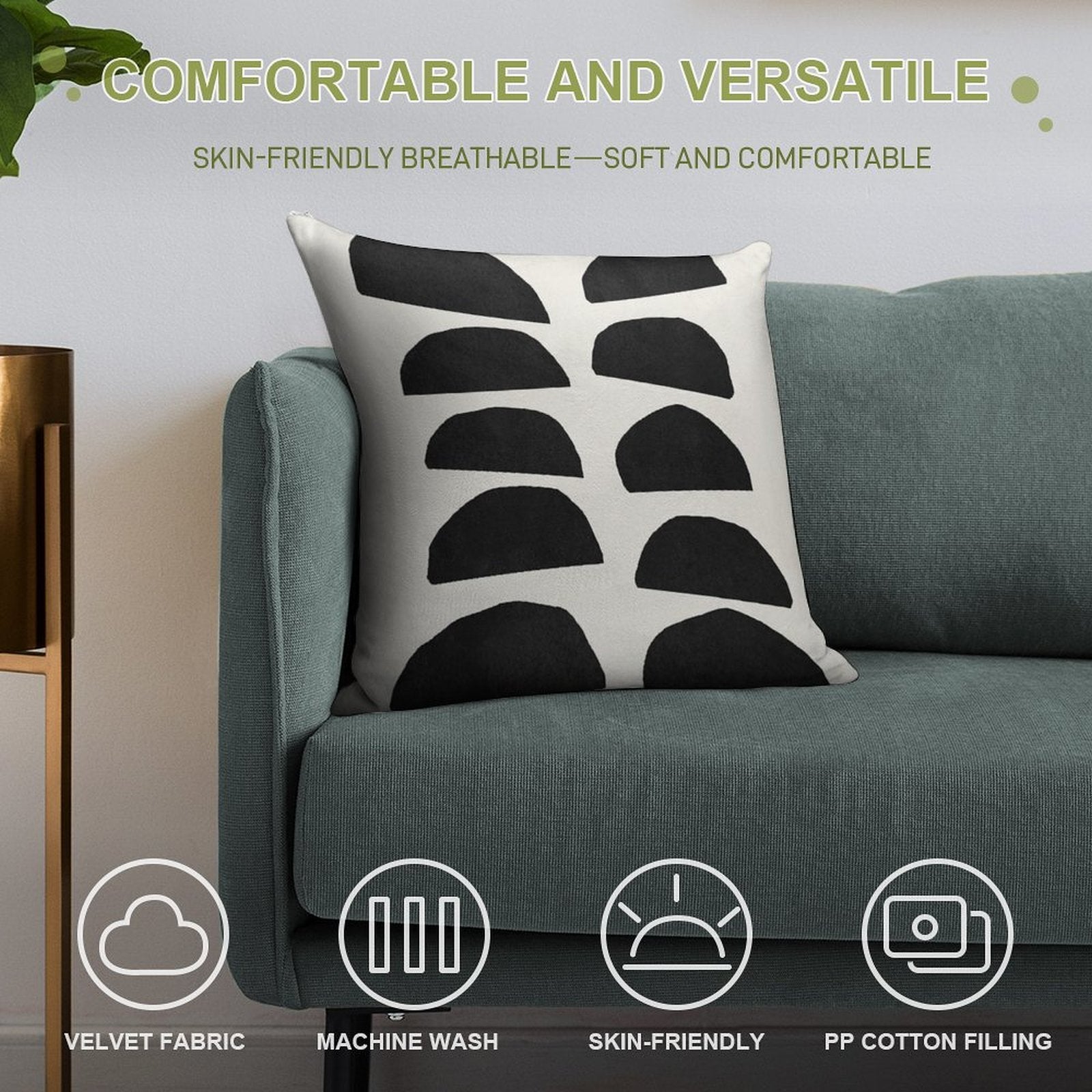 Abstract Black Shapes Art, Mid Century Modern Art Soft Anti-Pilling Throw Pillow