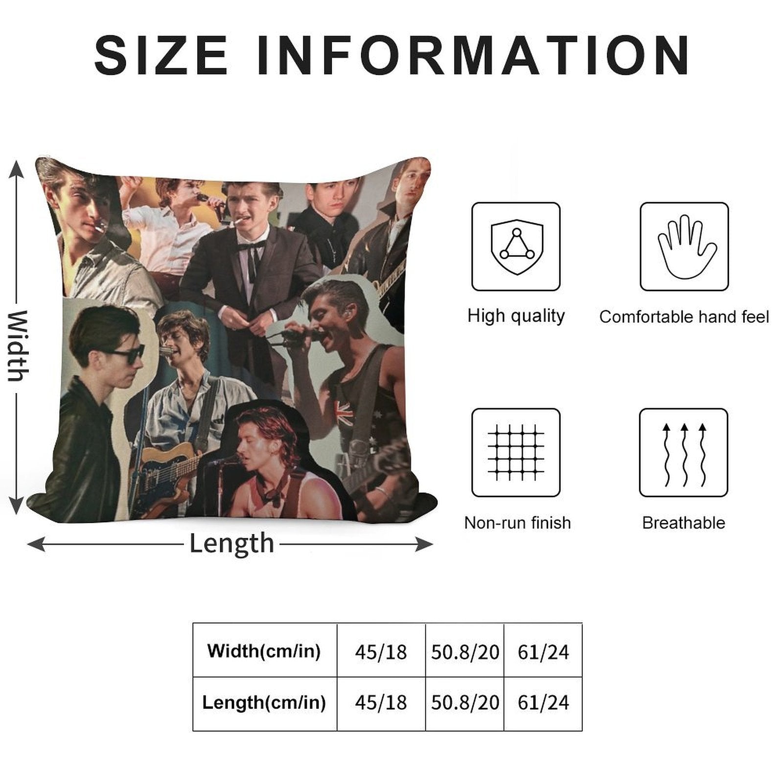 • Reinforced stitching along the edges prevents fraying and extends the life of your Alex Turner Arctic Monkeys Collage Pillowcase.