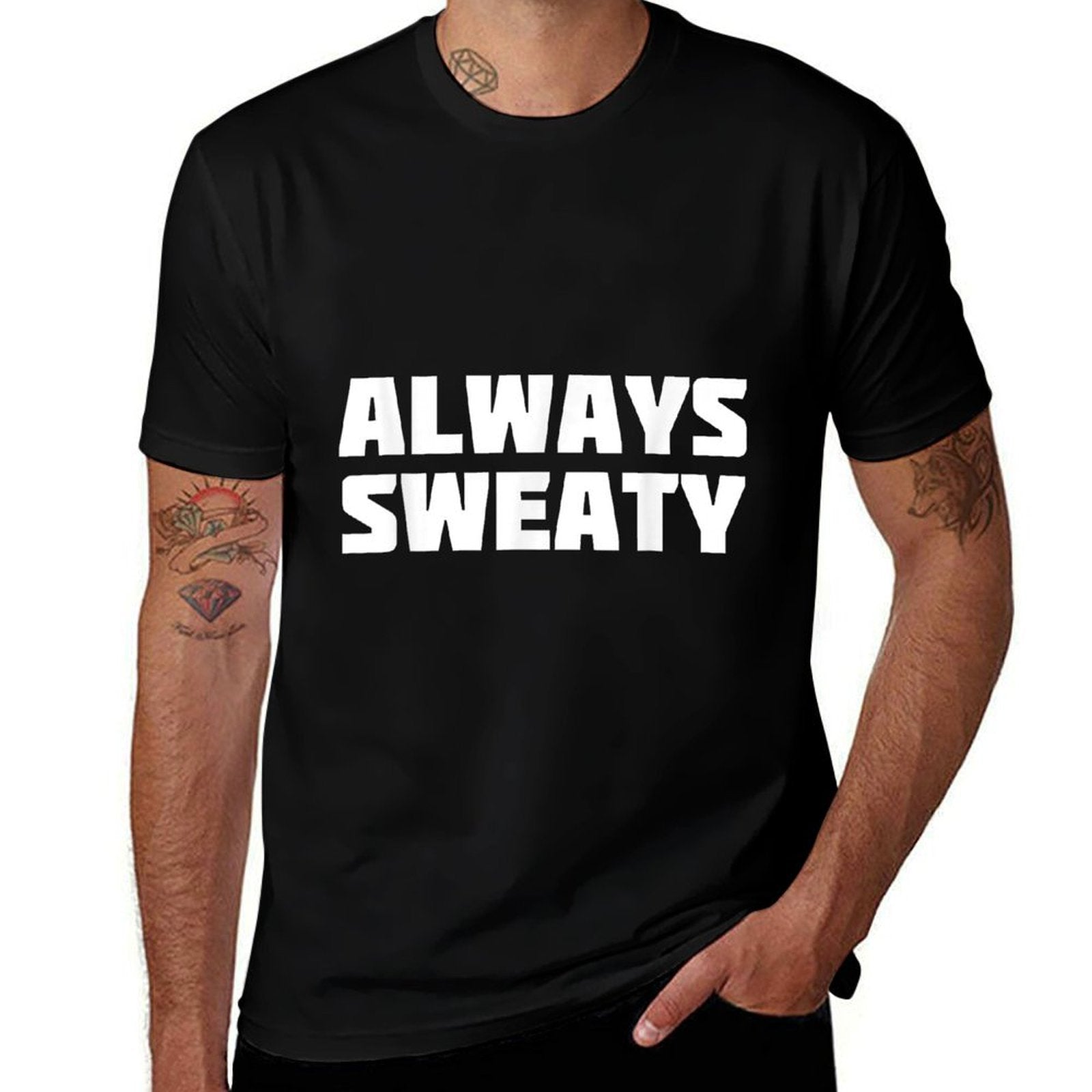 - Avoid bleach to preserve the Always Sweaty Sweating Excessive Perspiration Gym T-shirt’s bold graphics and cotton integrity.