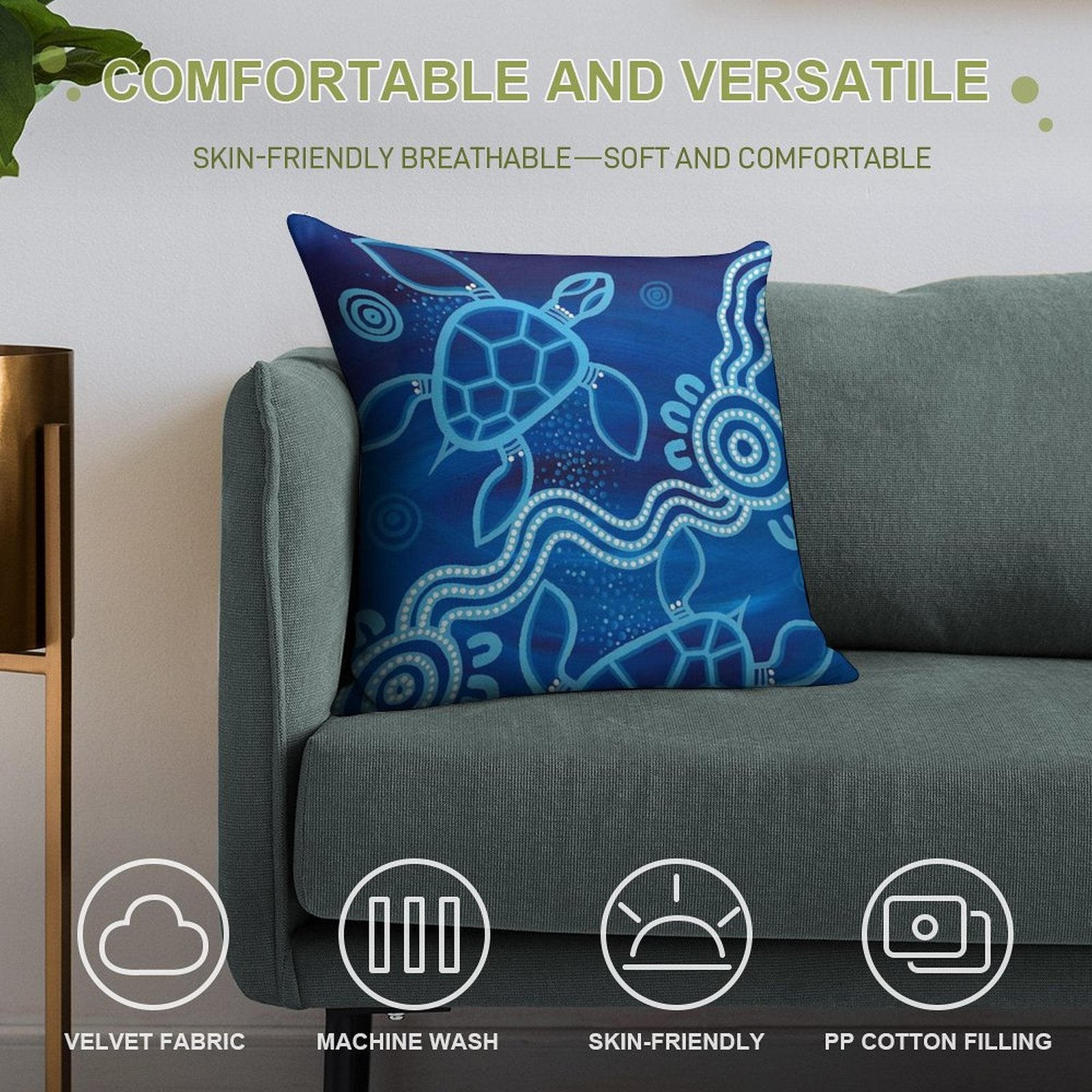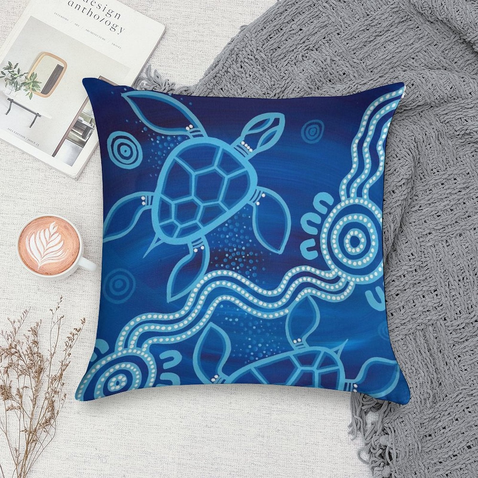Authentic Aboriginal Art - 2 Sea Turtles Soft Home Decor Throw Pillow