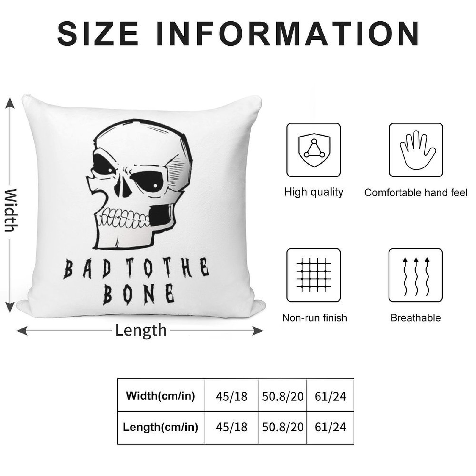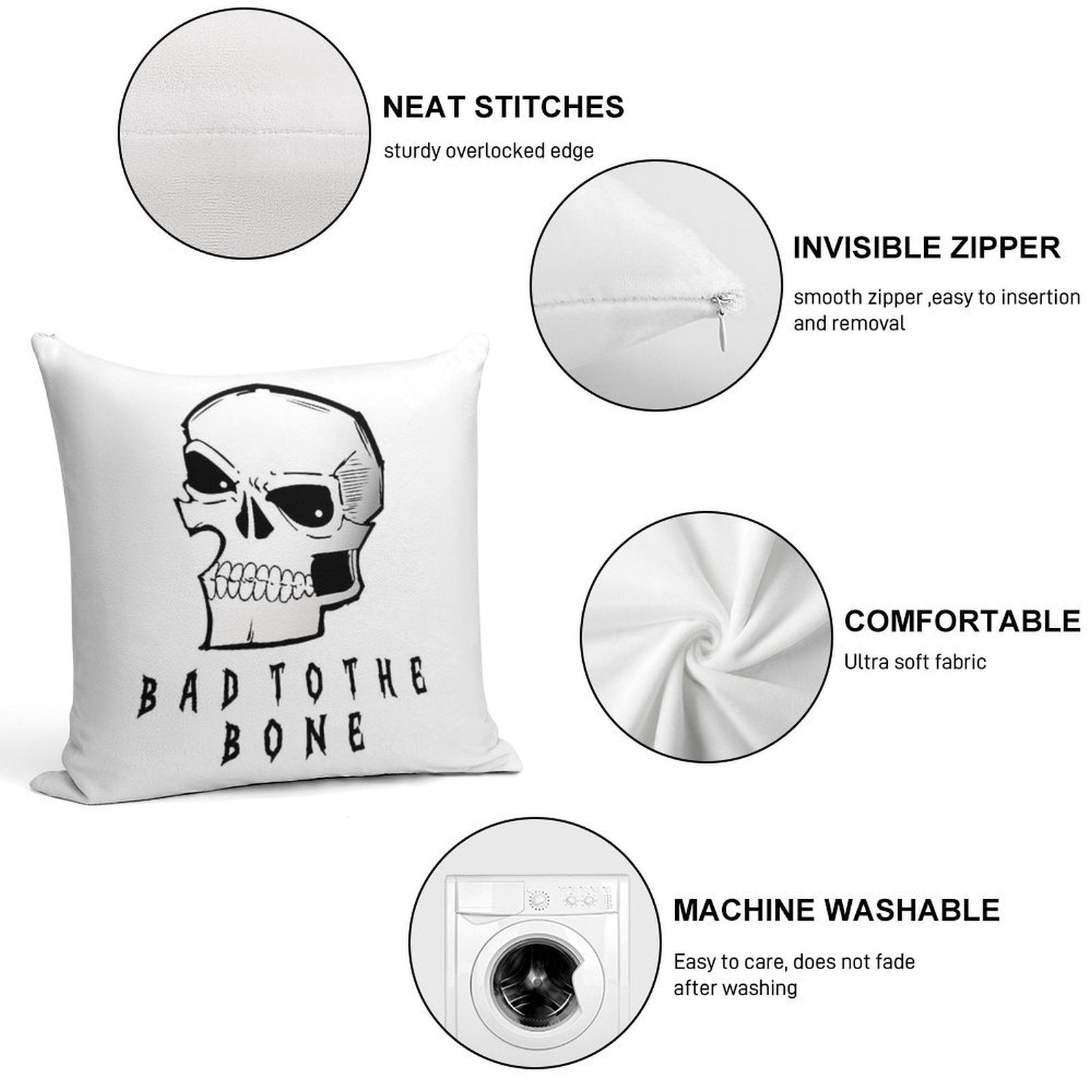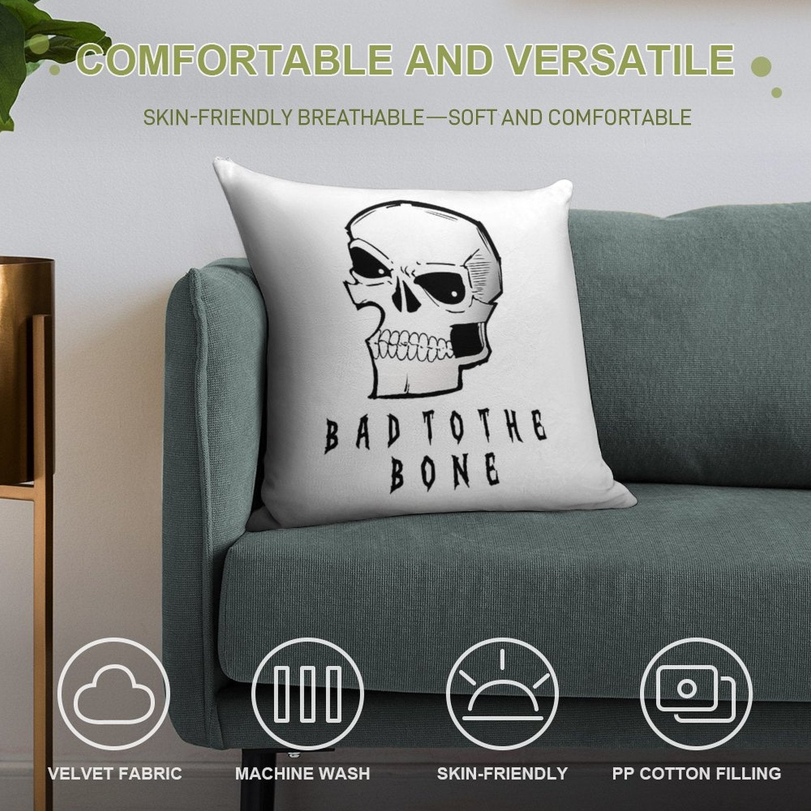 “Bad to The Bone – Gothic Rock Rebel Skull” Soft Reinforced Edging Throw Pillow