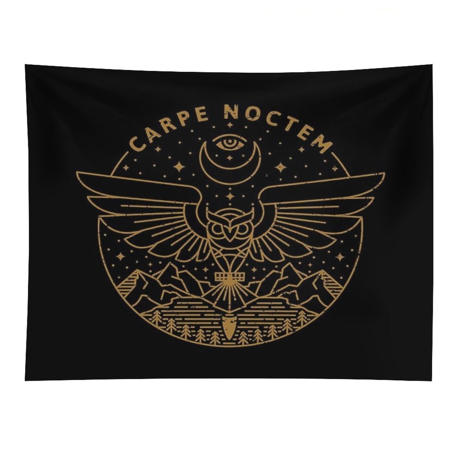 BionZax's Carpe Noctem Tapestry for Bedroom, College Dorm. Carpe Noctem Tapestry to decorate your bedroom, college dorm, living room, or kitchen wall, it is the best gift for funny, meme, aesthetic, trendy, simple, fashion, music, abstract, fantasy, modern tapestry for girls, men, boys, teen, women, kids.