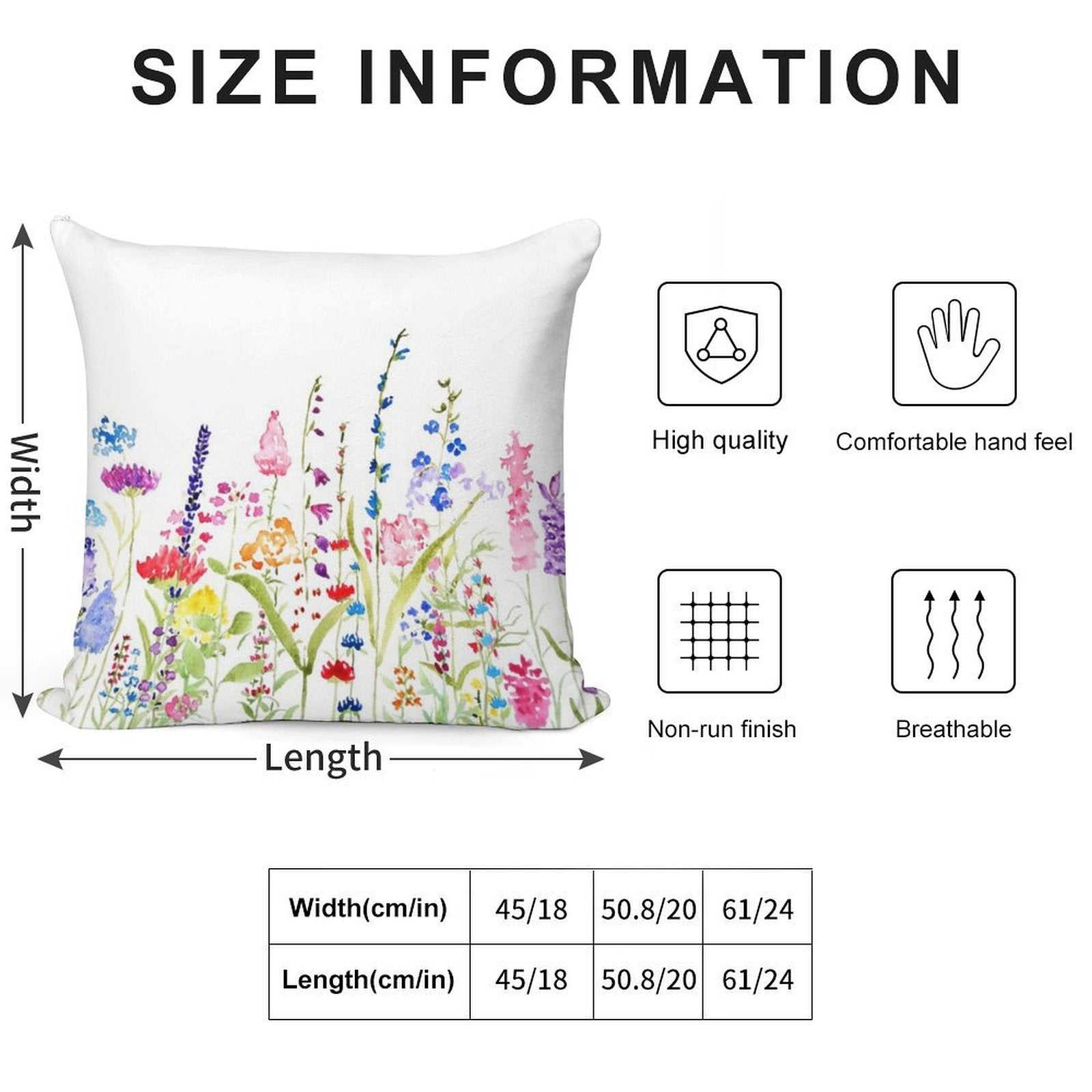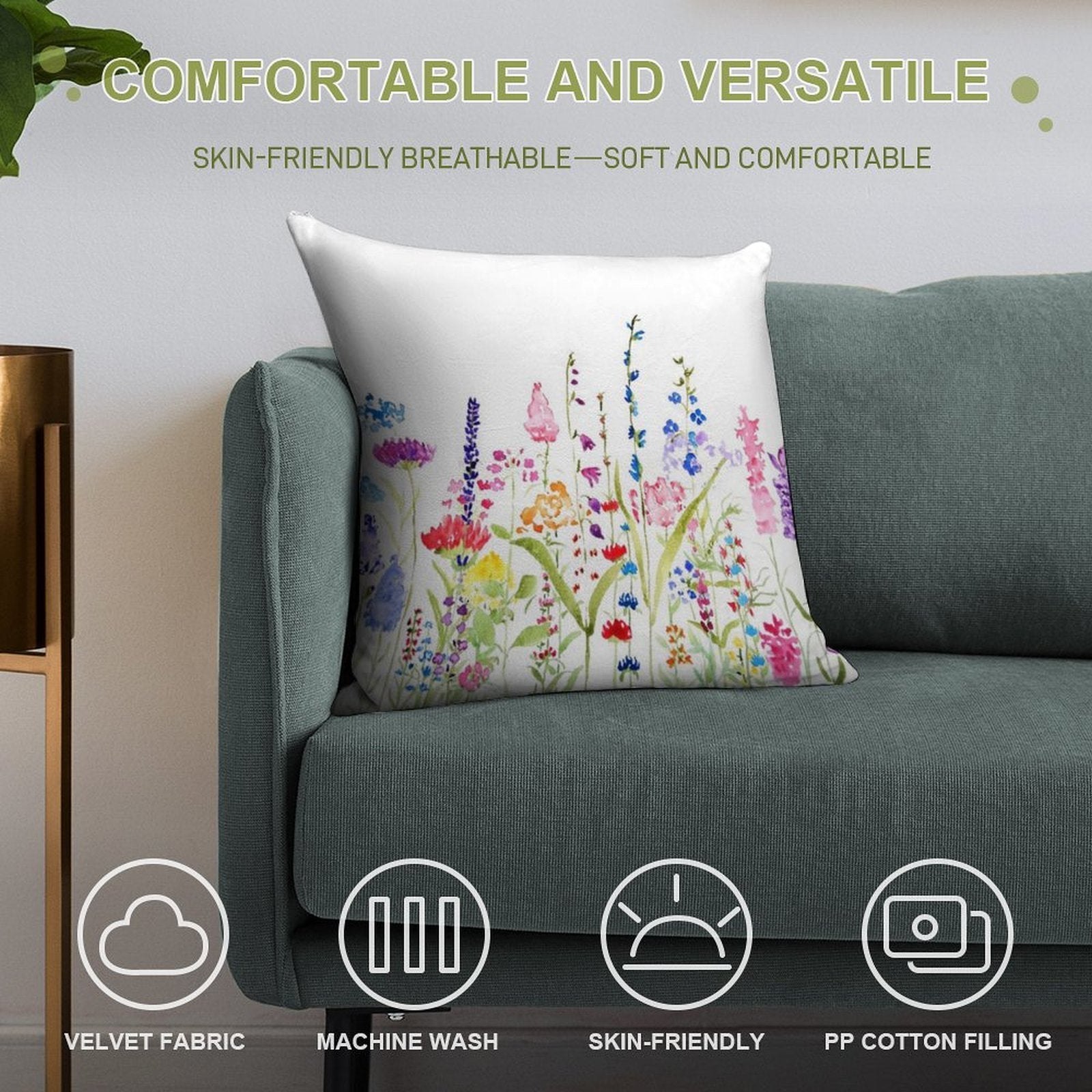 Hand Painted Colorful Wild Flower Field Soft Multiple Sizes Throw Pillow