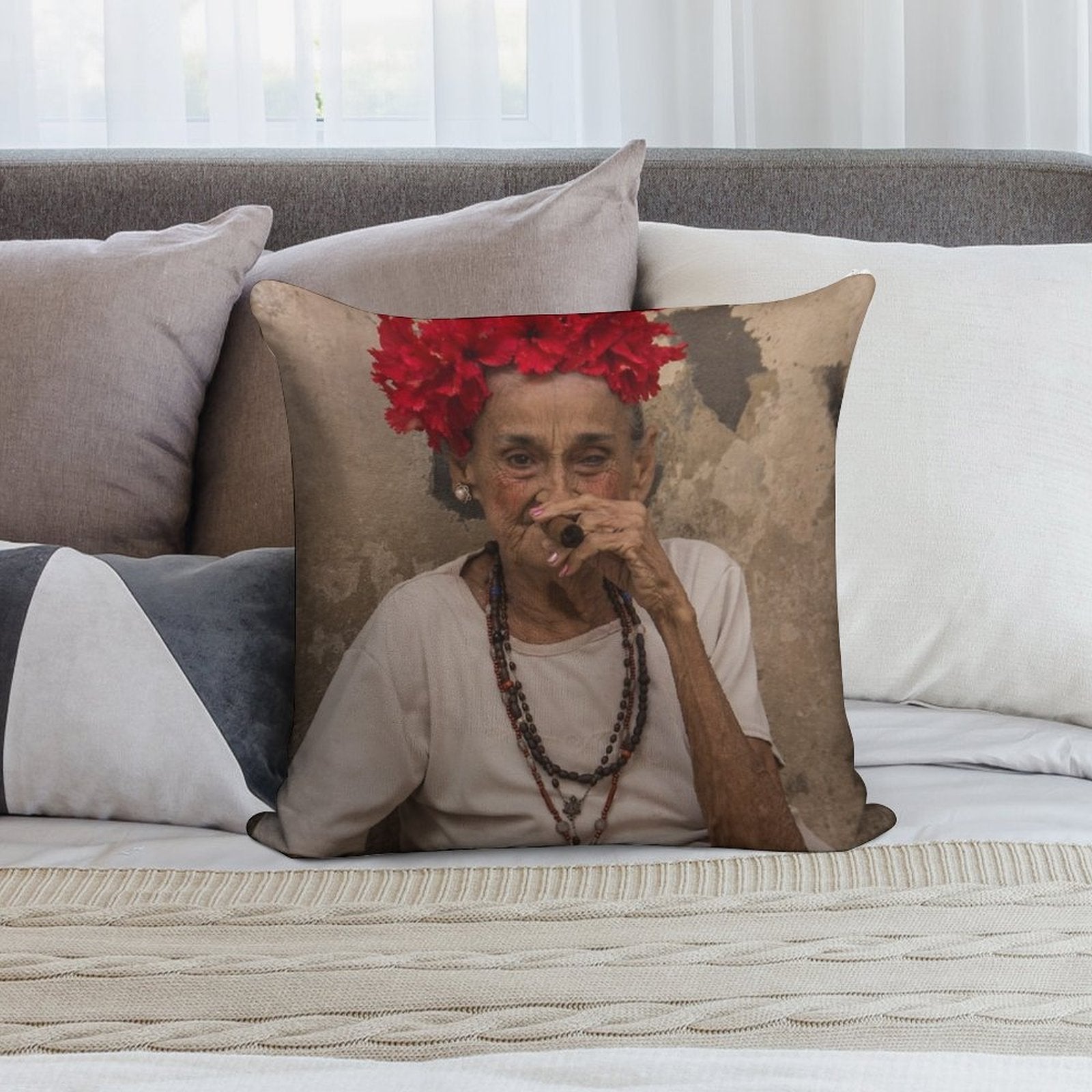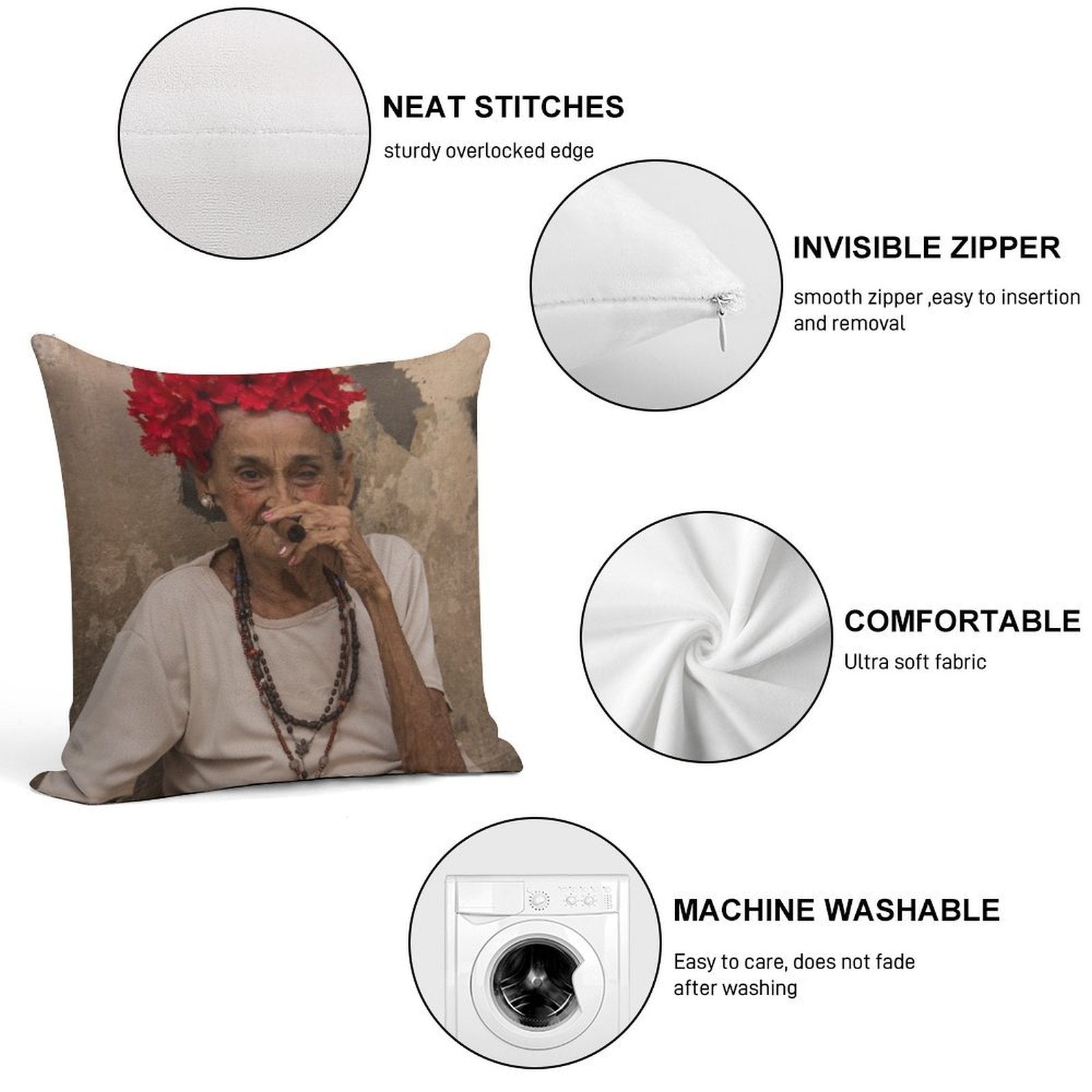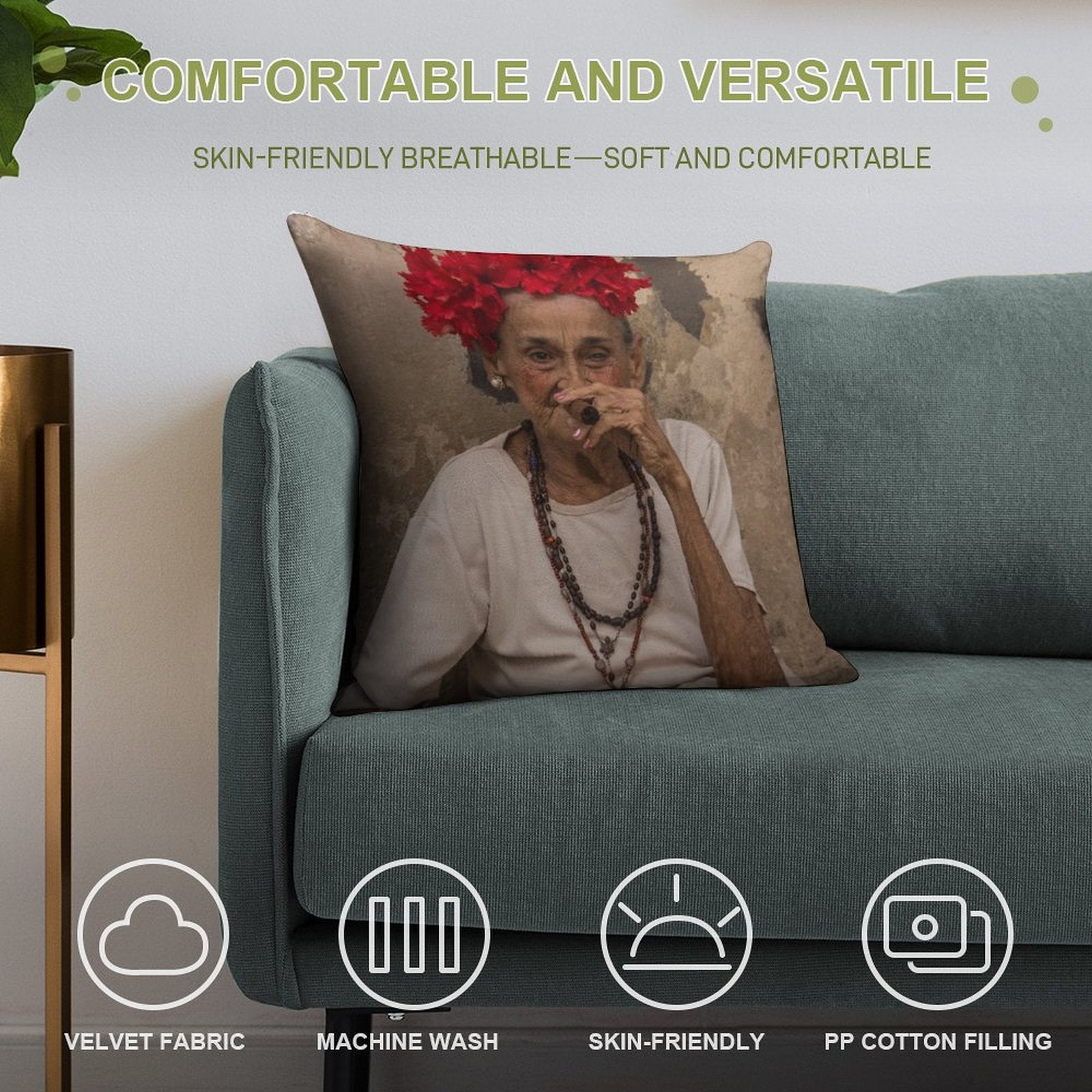 Old Lady Smoking Cuban Cigar in Havana Soft Ultra-Soft Texture Throw Pillow