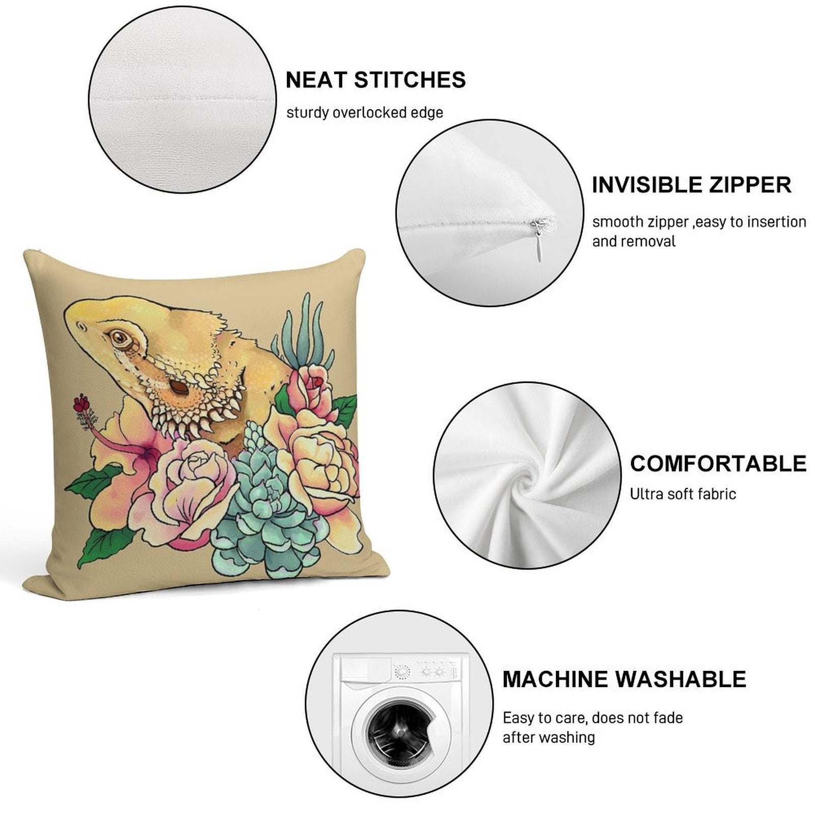 • Reinforced stitching along the edges prevents fraying and extends the life of your Pastel Bearded Dragon Pillowcase.