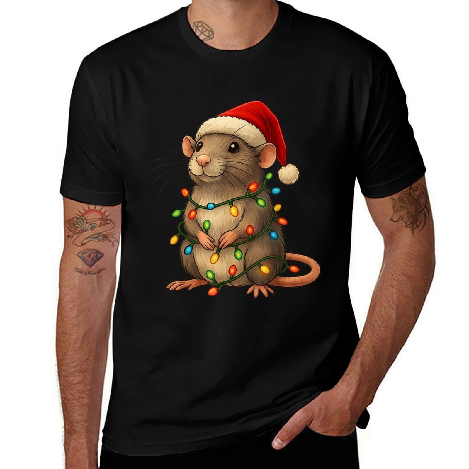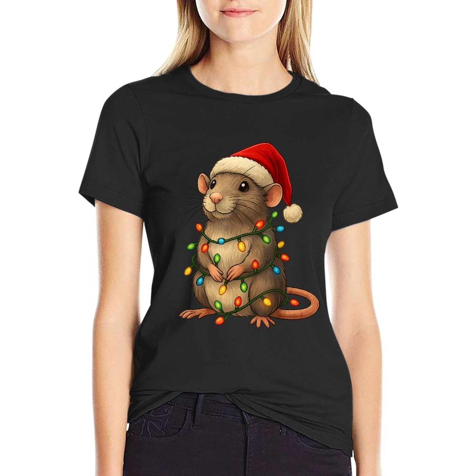 Rat Christmas Pajama Funny Xmas Lights Animals Lover Women Quick-drying T-Shirt