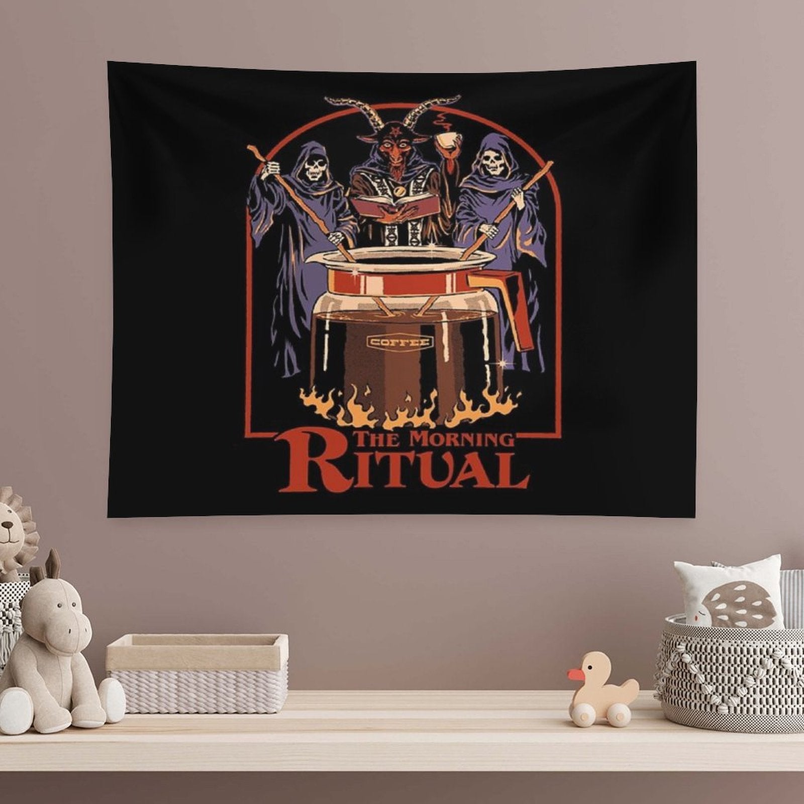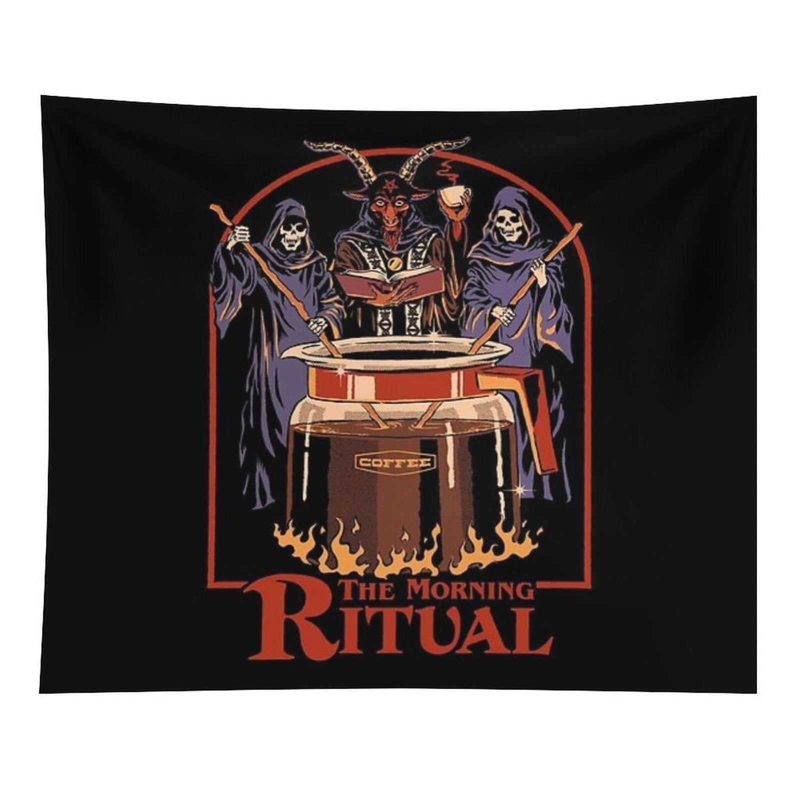 BionZax's The Morning Ritual Tapestry for Bedroom, College Dorm. The Morning Ritual Tapestry to decorate your bedroom, college dorm, living room, or kitchen wall, it is the best gift for funny, meme, aesthetic, trendy, simple, fashion, music, abstract, fantasy, modern tapestry for girls, men, boys, teen, women, kids.