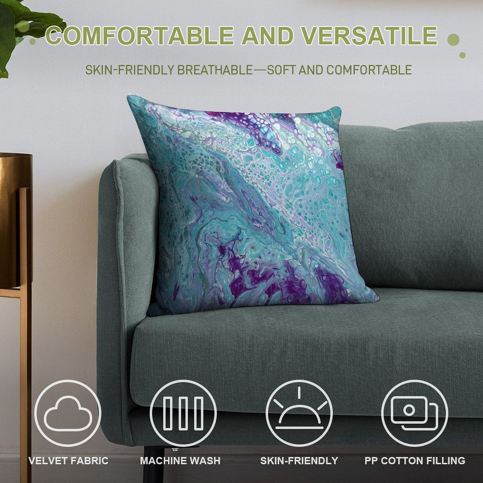 Turquoise And Purple Marble Soft Durable Construction Throw Pillow