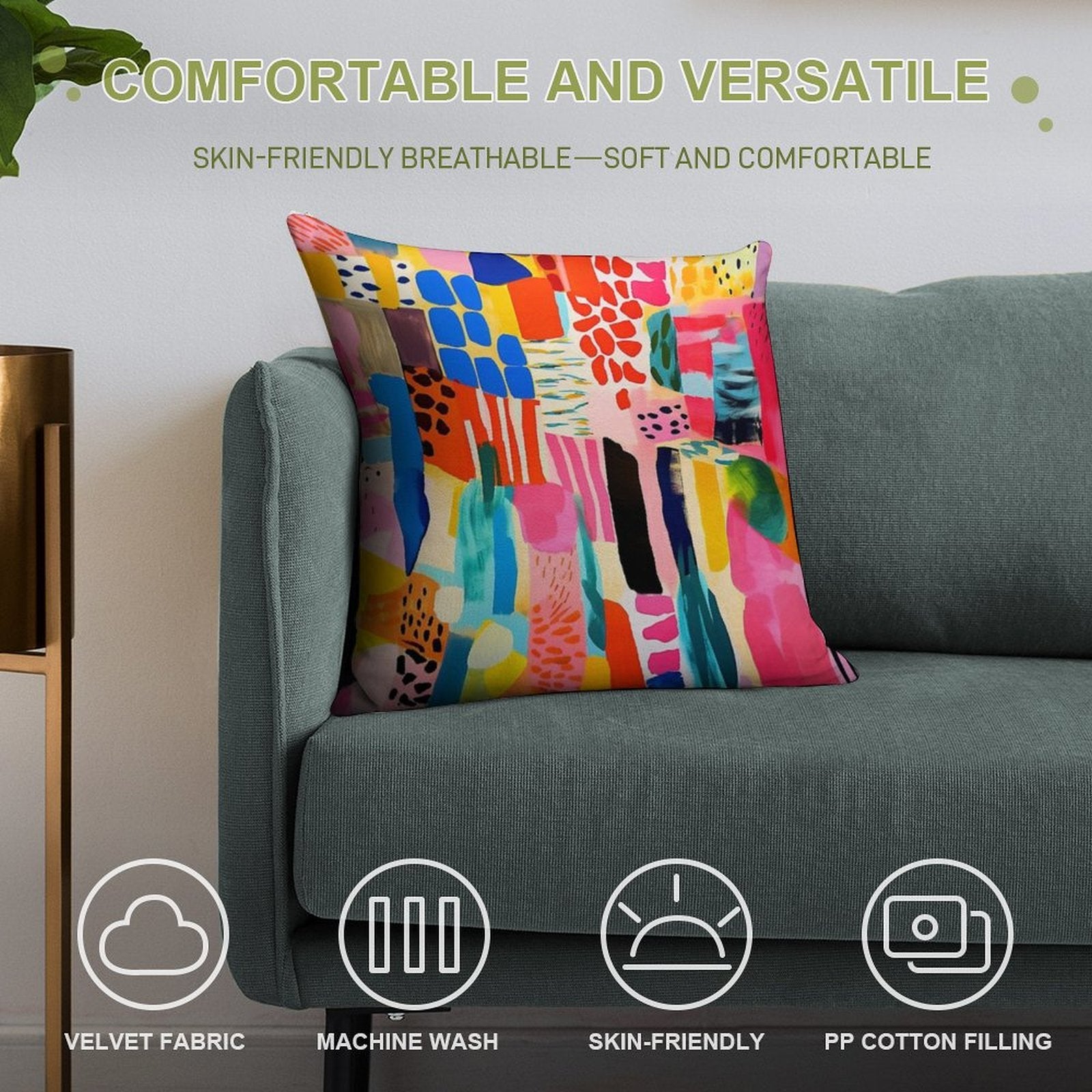 Vibrantly Colorful Trendy Abstract Designs Modern Art Soft Washable Throw Pillow