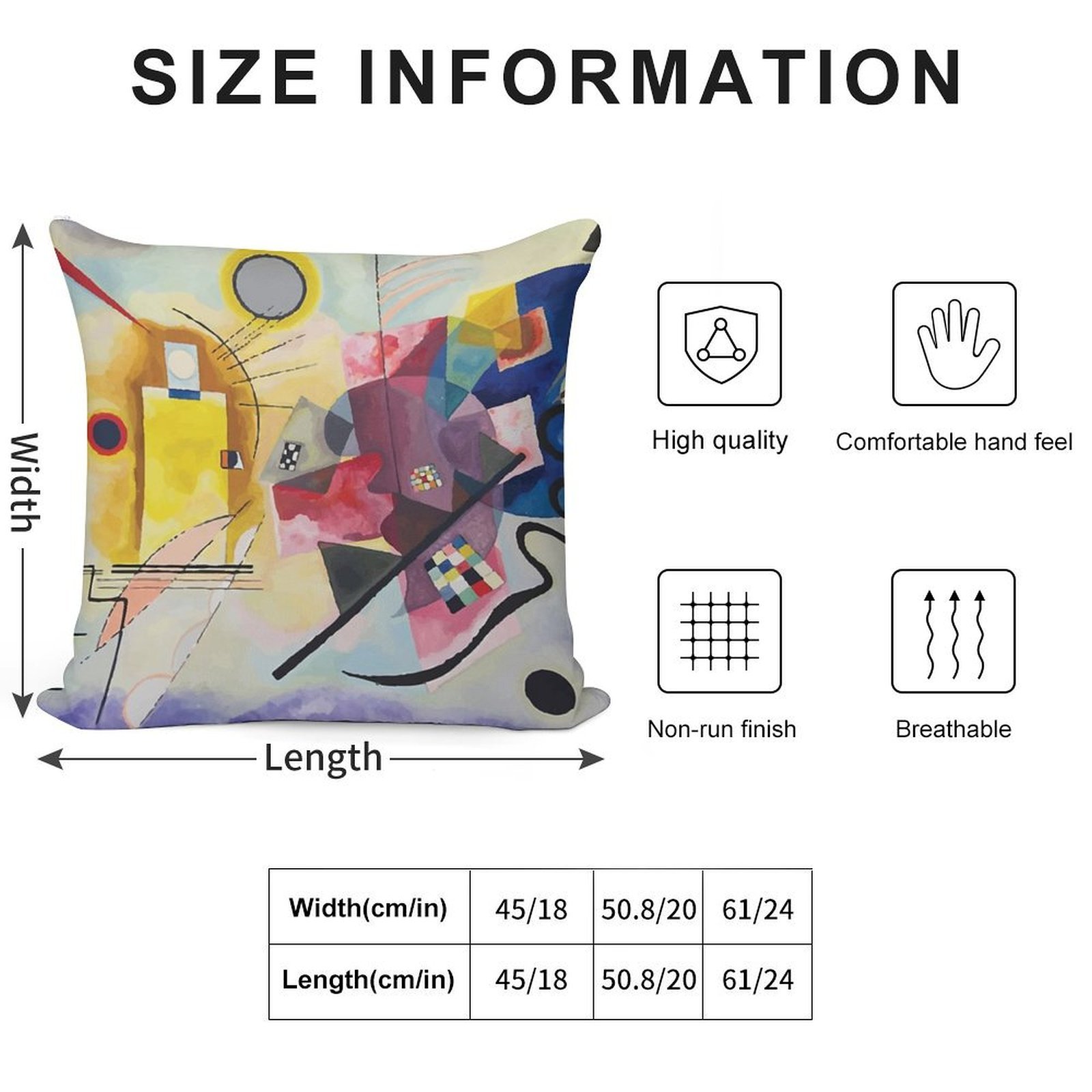 • Reinforced stitching along the edges prevents fraying and extends the life of your Wassily Kandinsky Yellow-Red-Blue Pillowcase.