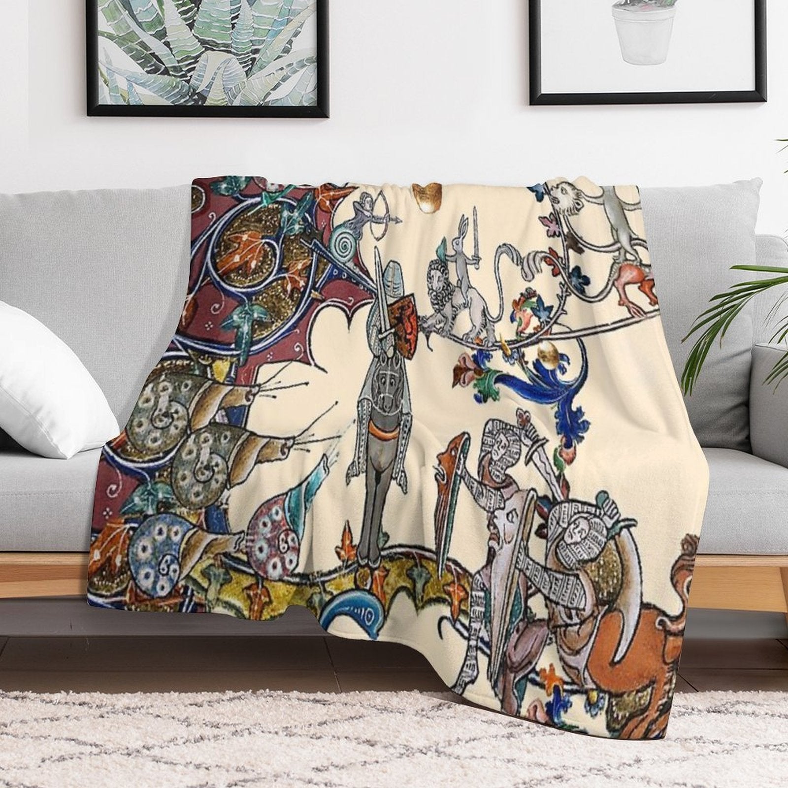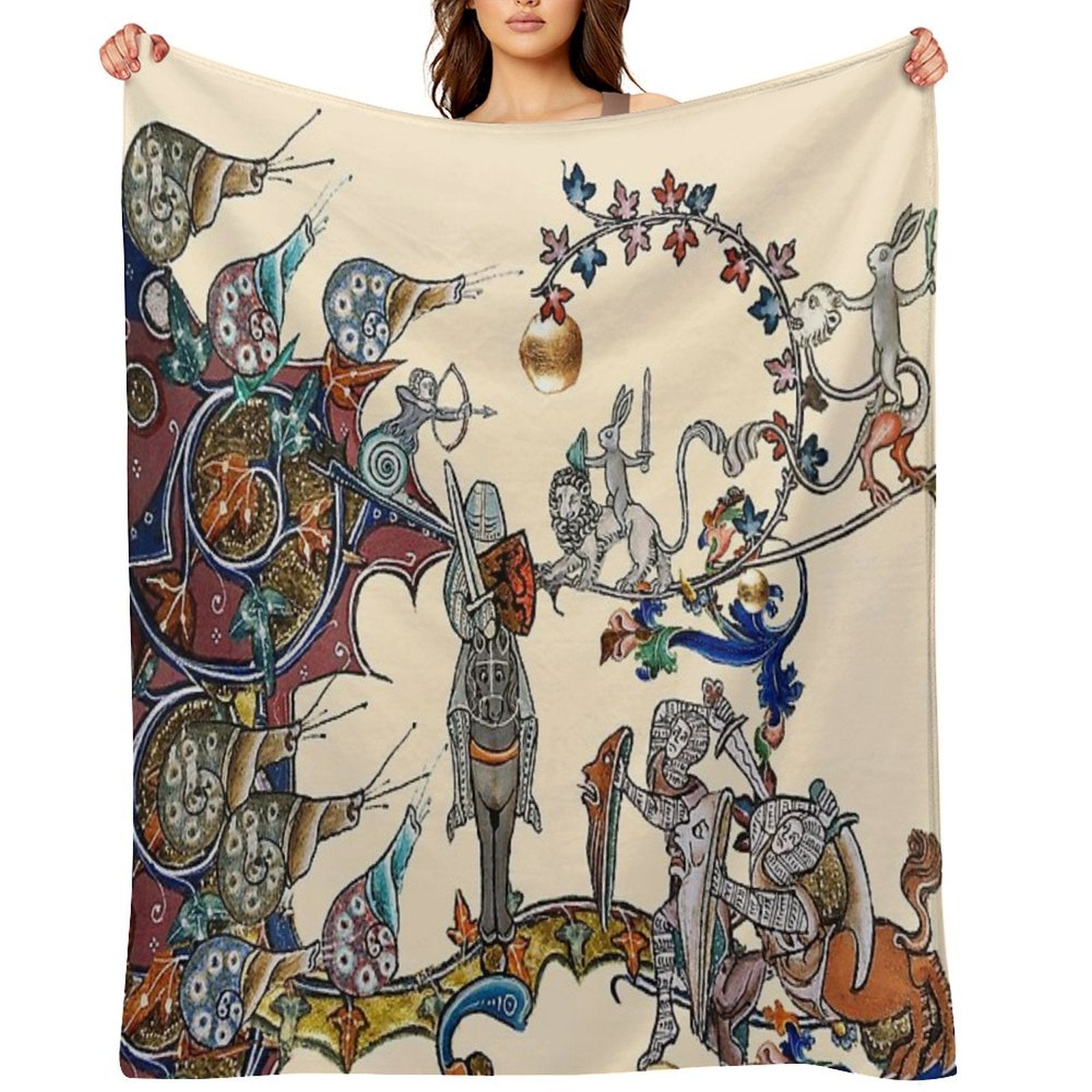 WEIRD MEDIEVAL BESTIARY WAR, KNIGHTS AND KILLER RABBITS FIGHTING WITH GIANT SNAILS Durable Throw Blanket