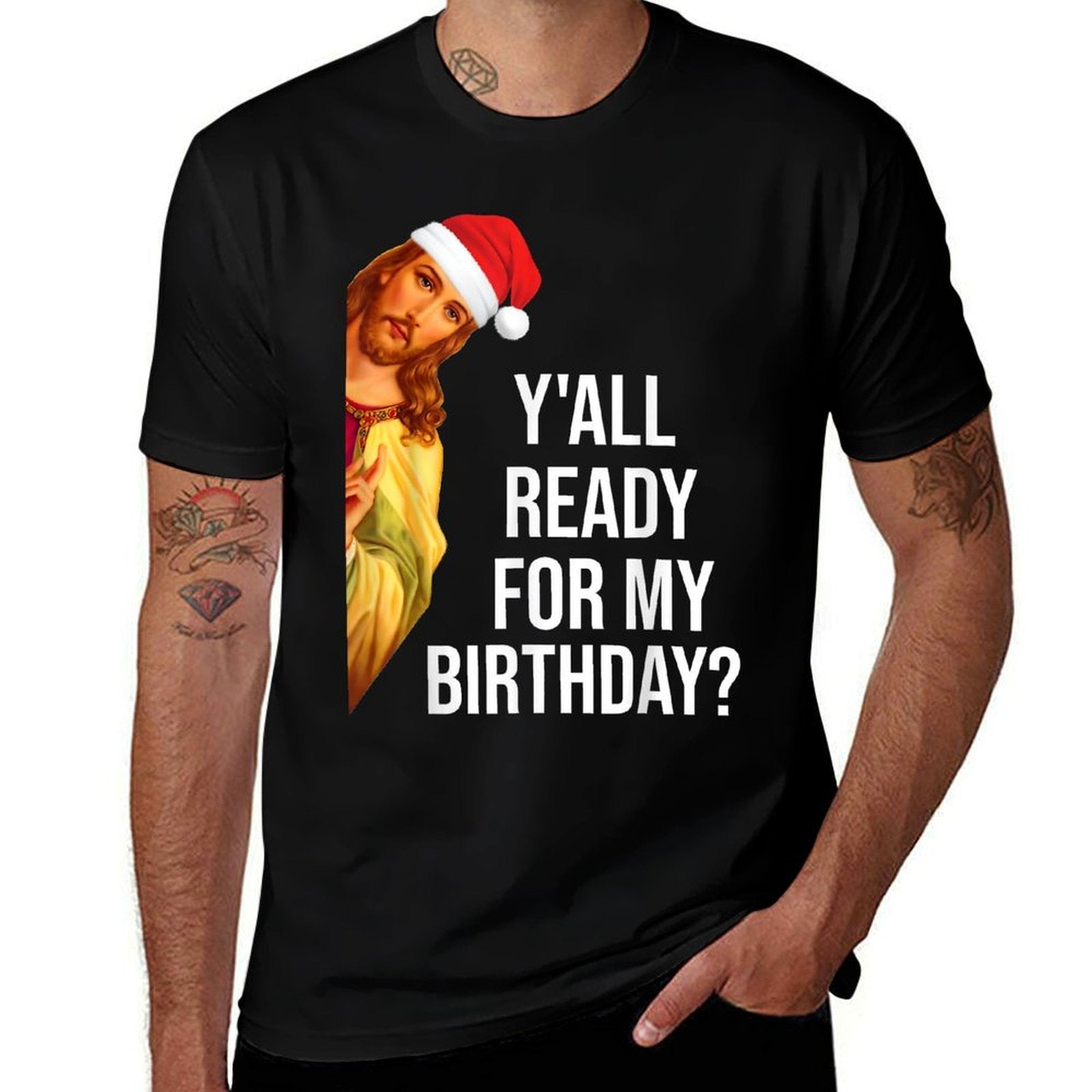 - Care Reminder: Skip soaking and bleach to extend your Yall Ready For My Birthday Jesus Christmas Santa Hat tee’s lifespan.