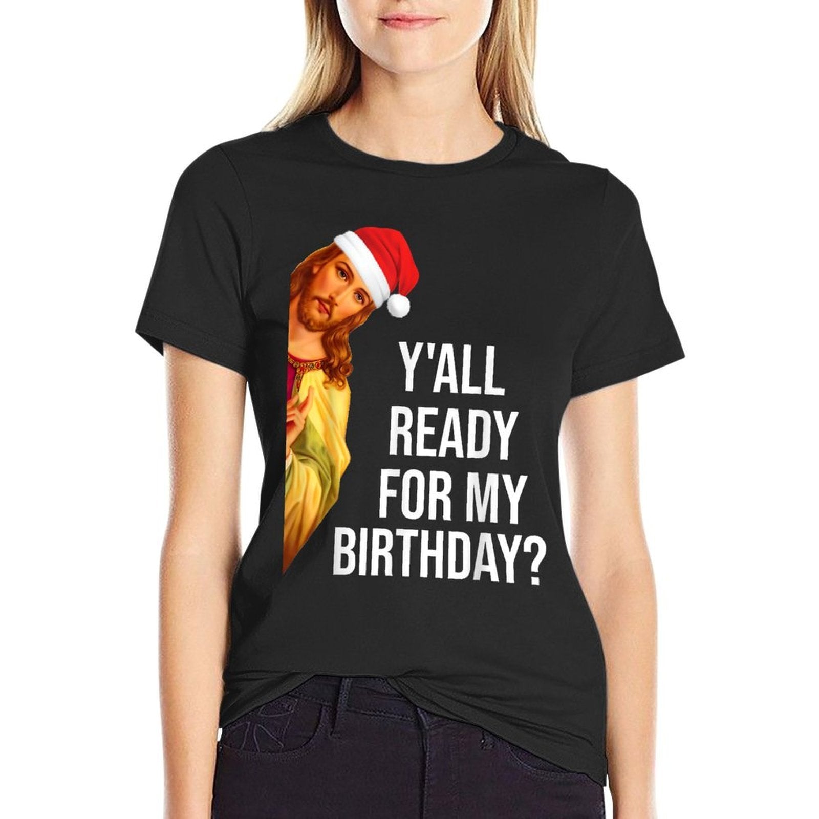 Why Choose Yall Ready For My Birthday Jesus Christmas Santa Hat T-Shirt?