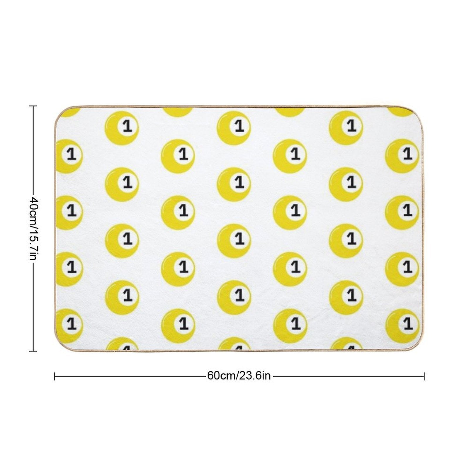 • Non-slip rubber backing grips floors securely, ideal for Yellow Bingo Ball Number 1 Mat placements on tiles, wood, or marble.