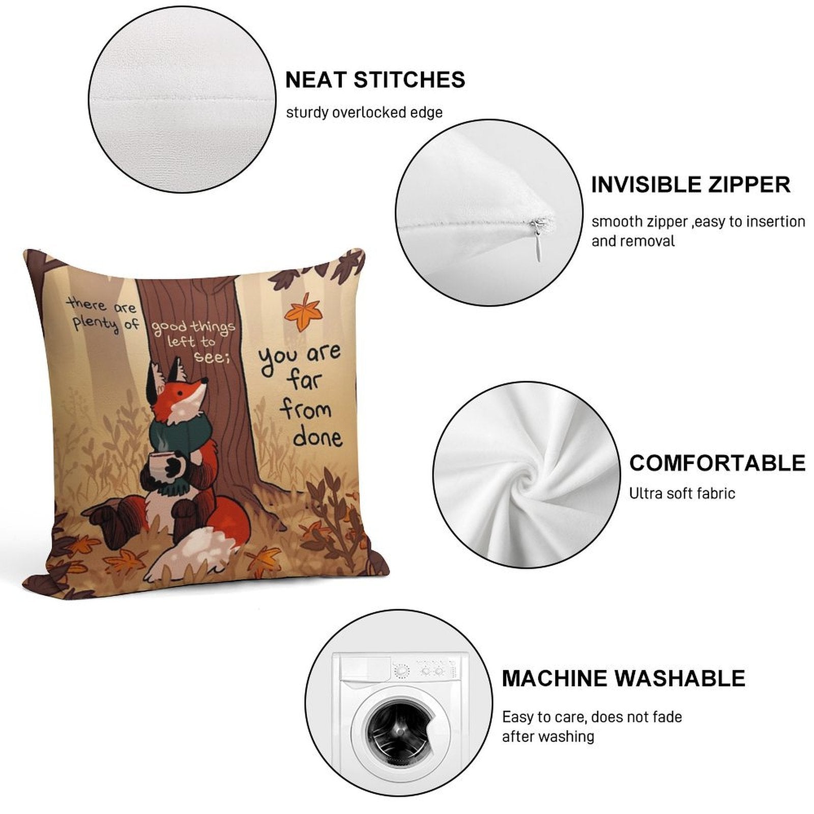 • Reinforced stitching along the edges prevents fraying and extends the life of your You Are Far From Done Autumn Forest Fox Pillowcase.