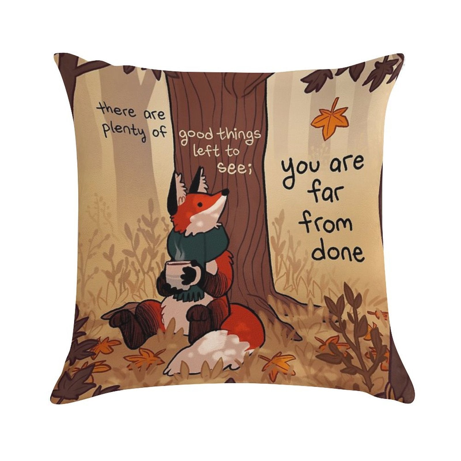 You Are Far From Done Autumn Forest Fox Soft Gift Ready Throw Pillow